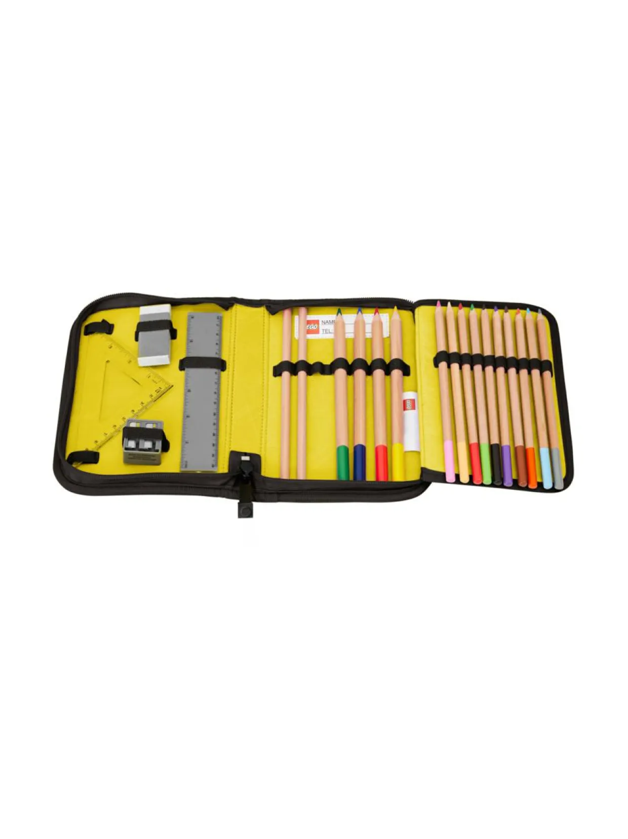 Ole valmis koulupäiviin tällä LEGO® penaalilla, joka sisältää kaikki tärkeät kirjoitusvälineet. Settiin kuuluu 2 lyijykynää, 10 värikynää, 4 paksumpaa värikynää, pyyhekumi, teroitin, viivain ja kolmioviivain – kaikki CE-sertifioituja. Penaalissa on lukujärjestys ja nimilappu, joka helpottaa tunnistamista. Valmistettu kestävästä ja PVC-vapaasta materiaalista, saatavana suosituissa LEGO® -teemoissa. Erinomainen valinta koulutaipaleen aloittaville lapsille!