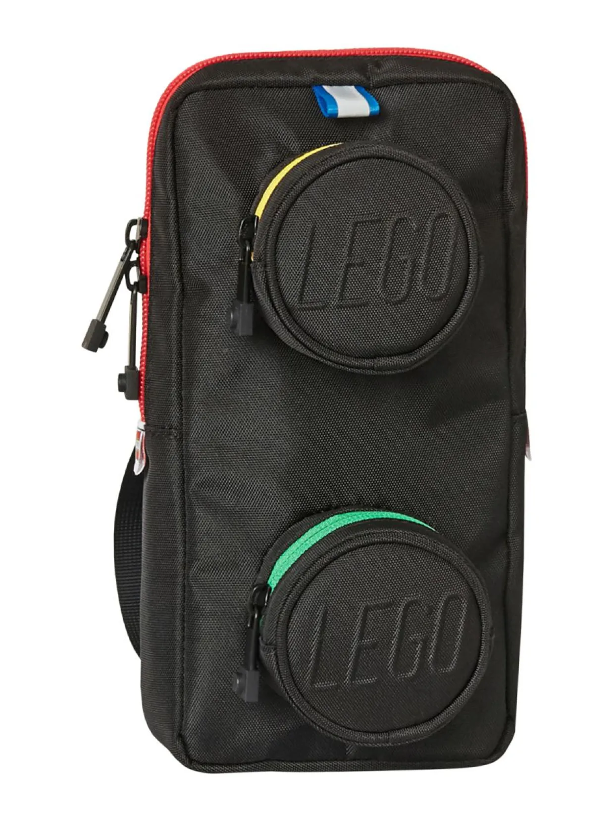 LEGO® Brick 1×2 -olkakassi pitää tärkeimmät tavarasi aina lähellä – täydellinen sekä lapsille että aikuisille. Loistava valinta kaupunkikierroksille tai ulkoiluun. Etuosan heijastava yksityiskohta parantaa näkyvyyttä pimeässä ja LEGO®-nuppivetimet tuovat hauskaa ilmettä. Säädettävä olkahihna mahdollistaa käytön vasemmalla tai oikealla olkapäällä. Kaksi pientä taskua tarjoavat nopean pääsyn tärkeisiin tavaroihin. Kevyt, kestävä ja käytännöllinen valinta jokapäiväiseen käyttöön!