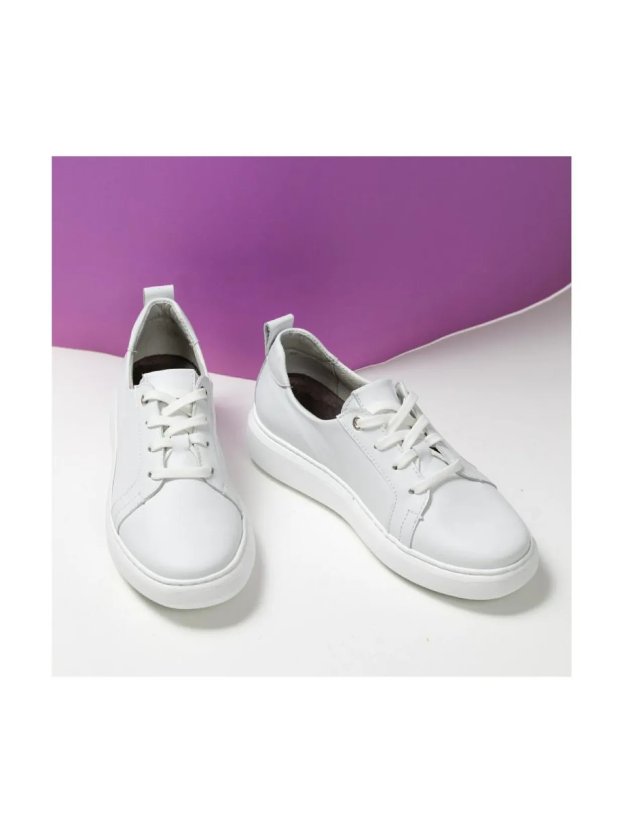 Valkoiset LEIMU-sneakerit ovat mukavat ja rennot. Valkoiset, minimalistiset sneakerit sopivat moneen asuun ja tilaisuuteen. Pue farkkujen tai kesämekon kanssa. Päällinen on pehmeää nappanahkaa ja pohja on kevyt ja mukava.