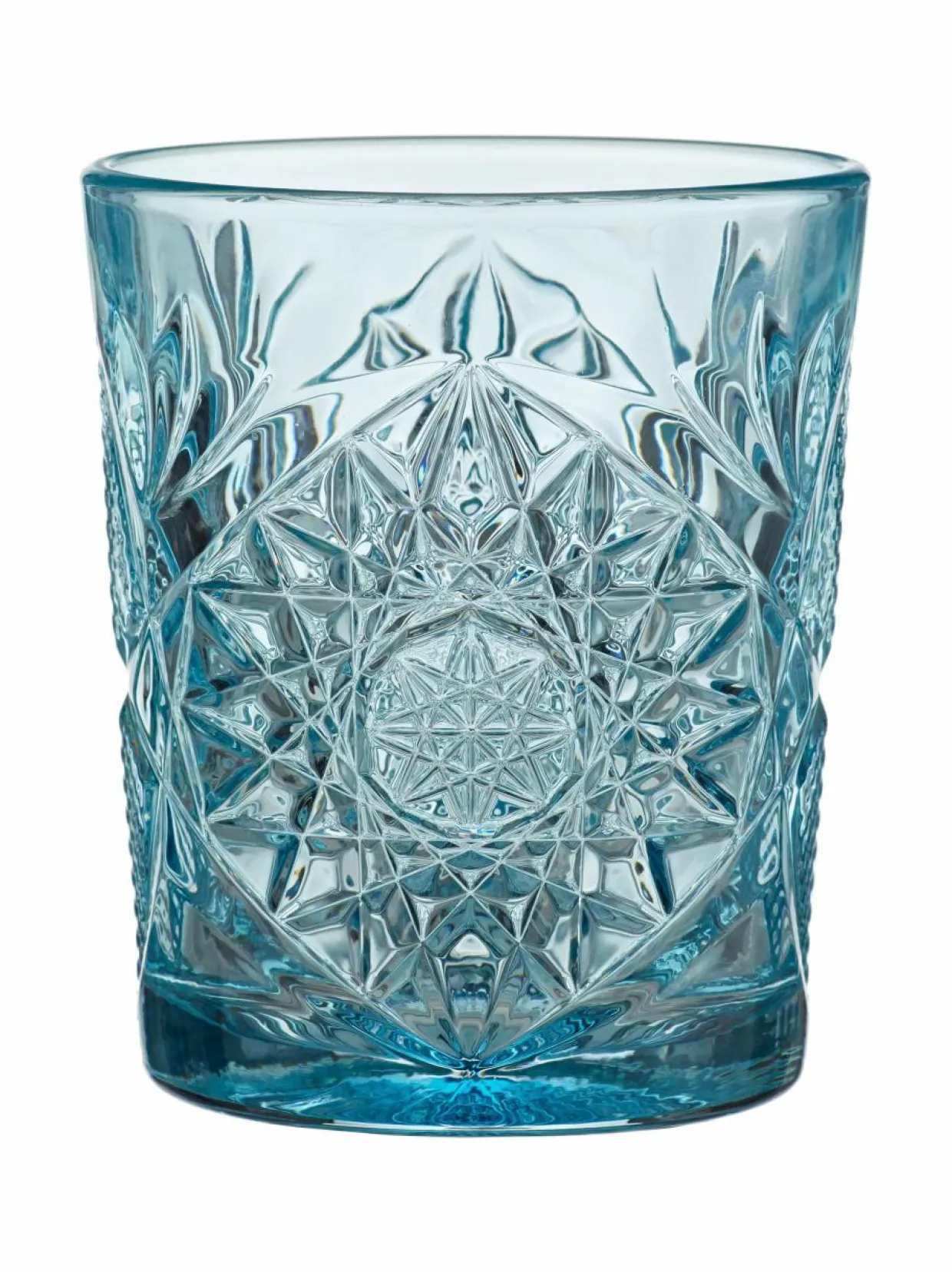 Kauniinväristä juomalasia kiertävät upeat Hobstar-kuvioleikkaukset, joilla koristeltuja laseja Libbey loi jo 1900-luvun alun amerikkalaisen kristallilasimuotoilun kultakaudella.