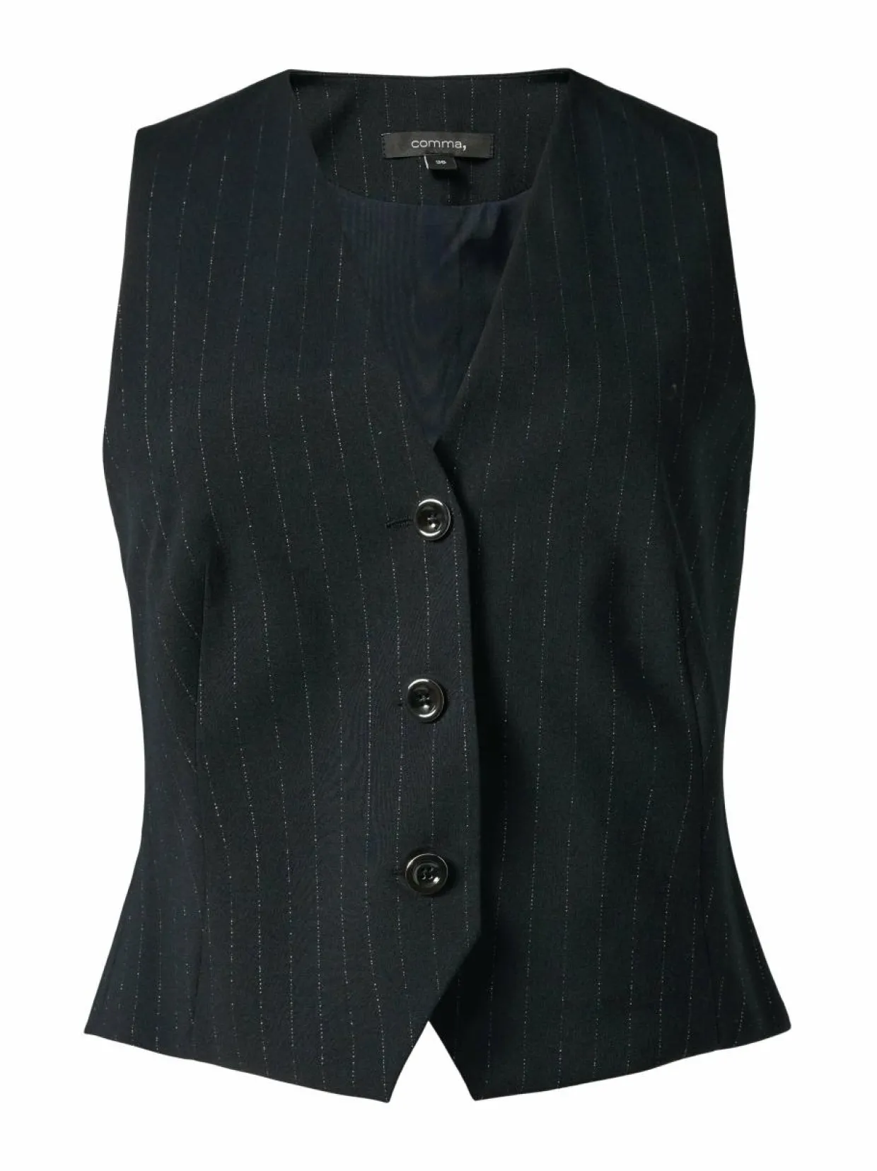 Comma-merkin liivissä yhdistyvät klassinen liituraitakuosi ja nykyaikainen muotoilu, mikä tekee siitä täydellisen kerrospukeutumiseen. Liivi on valmistettu miellyttävästä kankaasta, jossa viskoosi tuo pehmeyttä ja mukavuutta, elastaani varmistaa joustavuuden, ja metallikuidut tuovat hienovaraista kiiltoa. Tyköistuvassa liivissä on siisti v-pääntie ja kolmen napin kiinnitys, jotka luovat selkeän ja ryhdikkään siluetin.