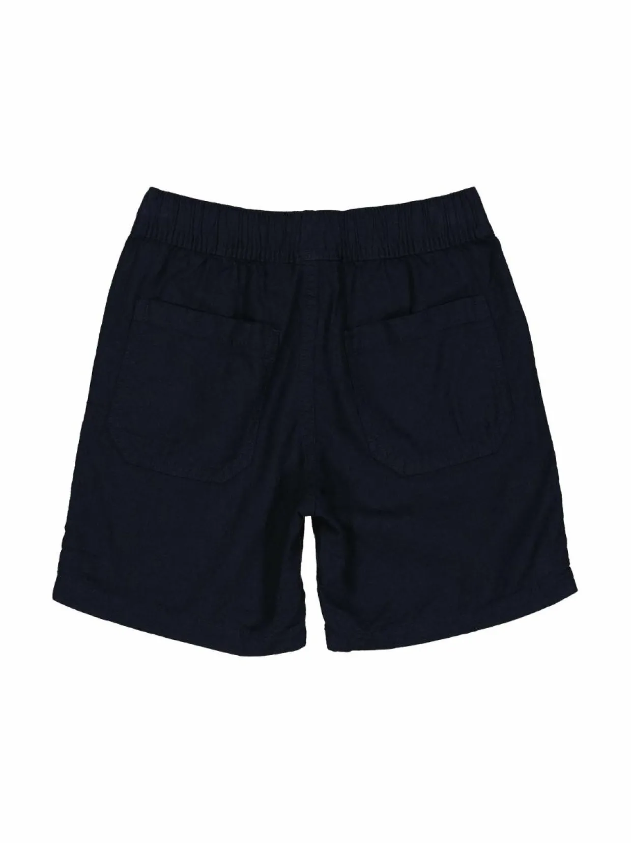 Pehmeästä pellava-puuvillasta valmistetut shortsit, joissa on rento istuvuus ja säädettävä vyötärö. Tässä shortsimallissa on myös sivu- ja takataskut. Tuote sisältää 55 % kierrätettyä pellavaa.