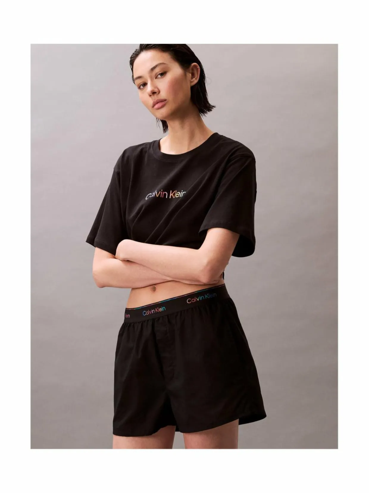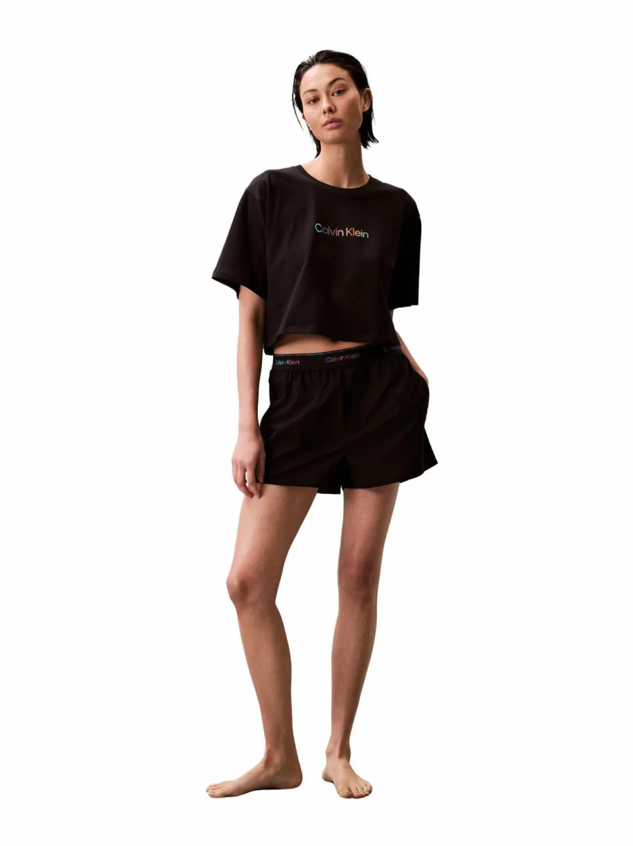 Calvin Klein vaatemerkin shortsit kuuluvat yhdenvertaisuutta ja moninaisuutta korostavaan Pride-mallistoon. Nämä pyjamashortsit on varustettu logollisella vyötärönauhalla ja taskuilla. Materiaalina on käytetty pehmeän tuntuista puuvillapopliinia. Tuote sisältää 20 % kierrätyspuuvillaa.
