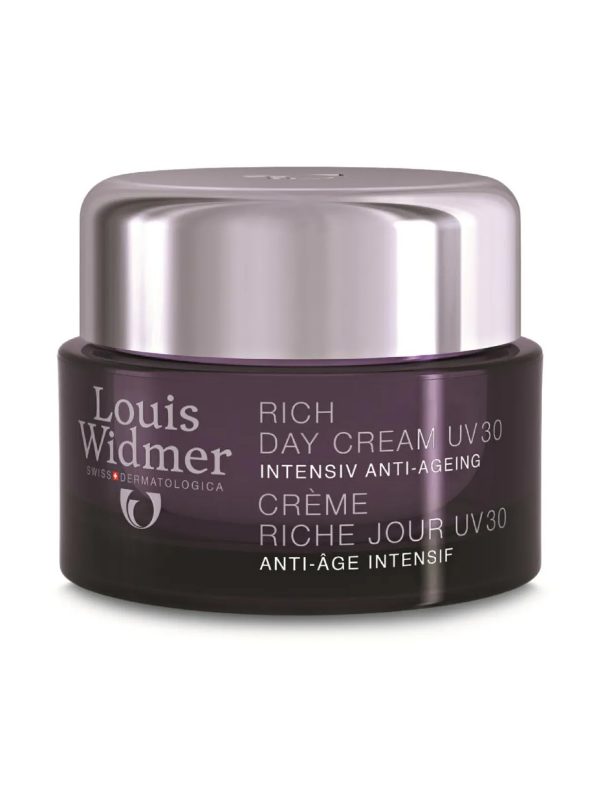 Louis Widmer Rich Day Cream UV 30 on intensiivisesti uudistava ja kosteuttava anti-age -päivävoide SPF30-suojakertoimella normaalille ja kuivalle iholle. Syväkorjaavat tehoaineet ja teknologia: tuloksena täyteläinen, kiinteämpi iho.