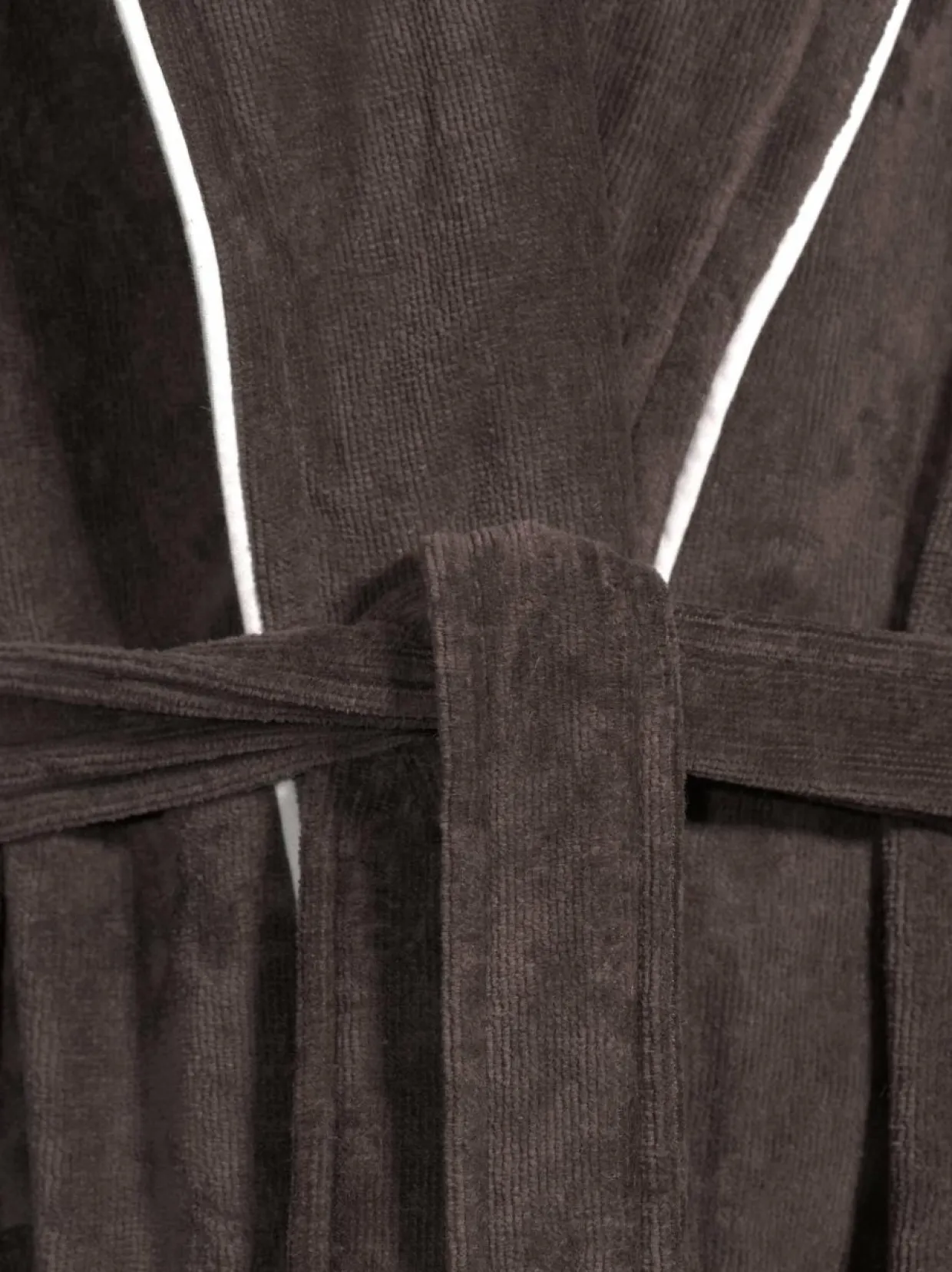 Villa Stockmannin Lounge-kylpytakki on pehmeää puuvillaa, joka tuntuu miellyttävältä ihoa vasten. Kylpytakkia somistavat kontrastiväriset tereet ja kauniit kaulukset. Takki suljetaan vyöllä, ja edessä on avotaskut.