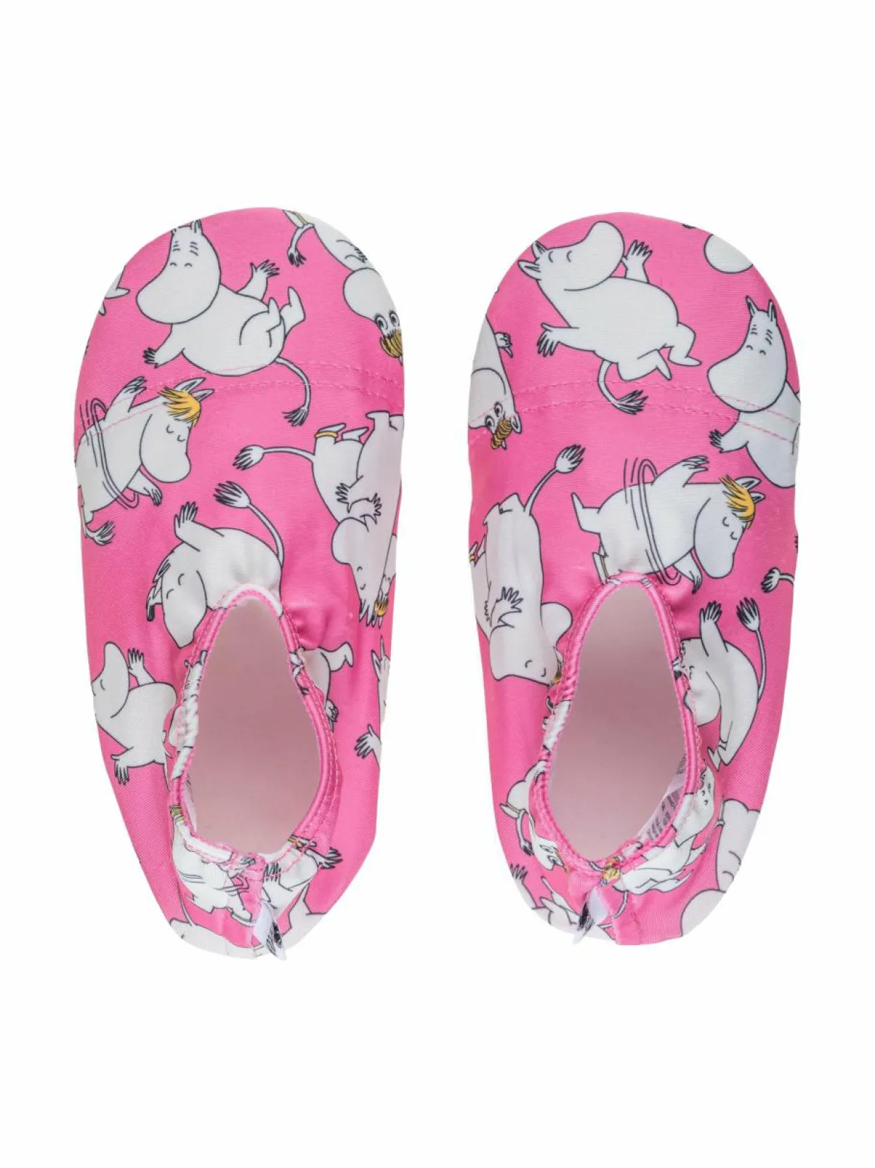 Liukuestetossut, joiden päällinen on valmistettu samasta materiaalista kuin uimapuvutkin. Monikäyttöiset tossut sopivat uimiseen rannalla tai uimahallissa sekä kerhotossuiksi ja sisäkäyttöön. Tossuissa on muumiprintti.