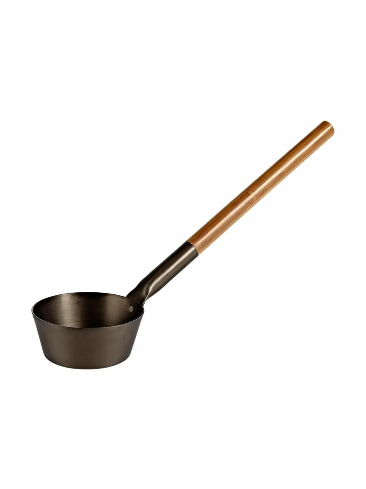 Design sopii saunaankin. Alumiinisen löylykauhan varsi on bambua. Kauhan pituus on noin 43 cm.
