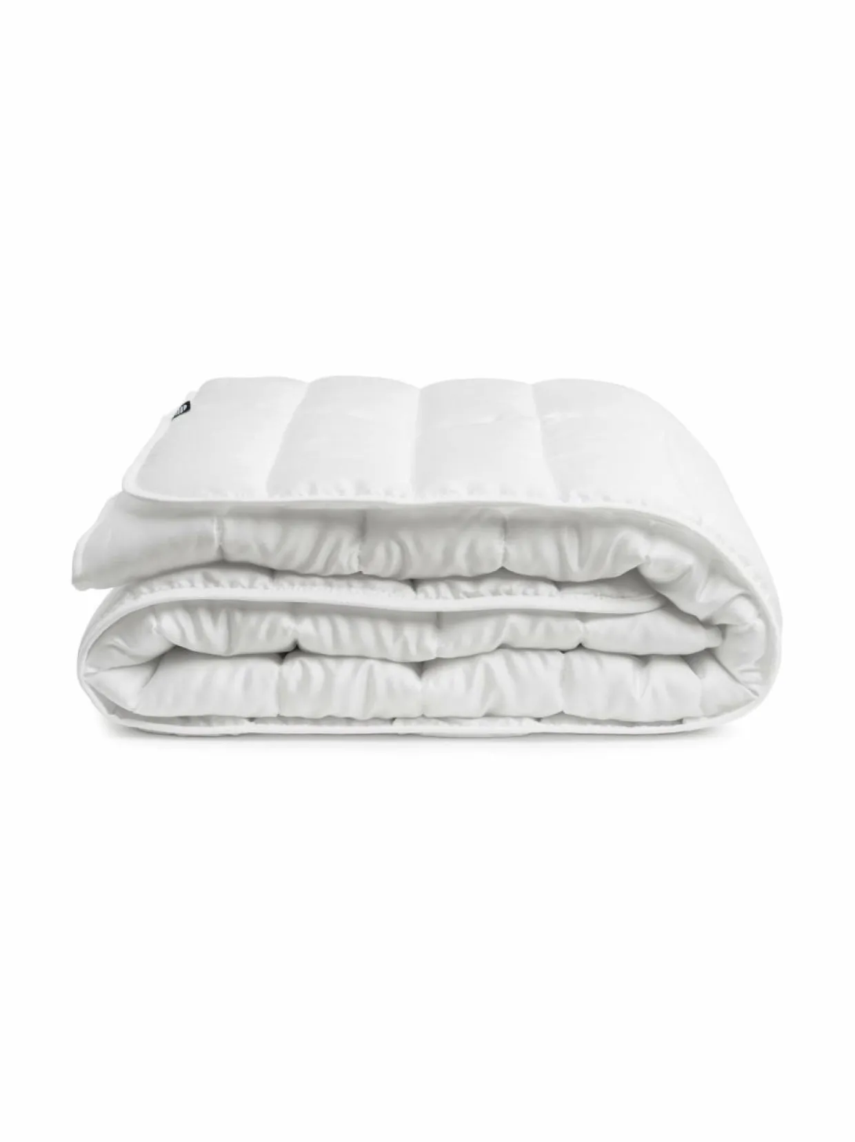 Paino 600 g. Kuori 100 % Tencel-lyocelliä, täyte 50 % Tencel-lyocelliä ja 50 % kierrätettyä polyesteriä.