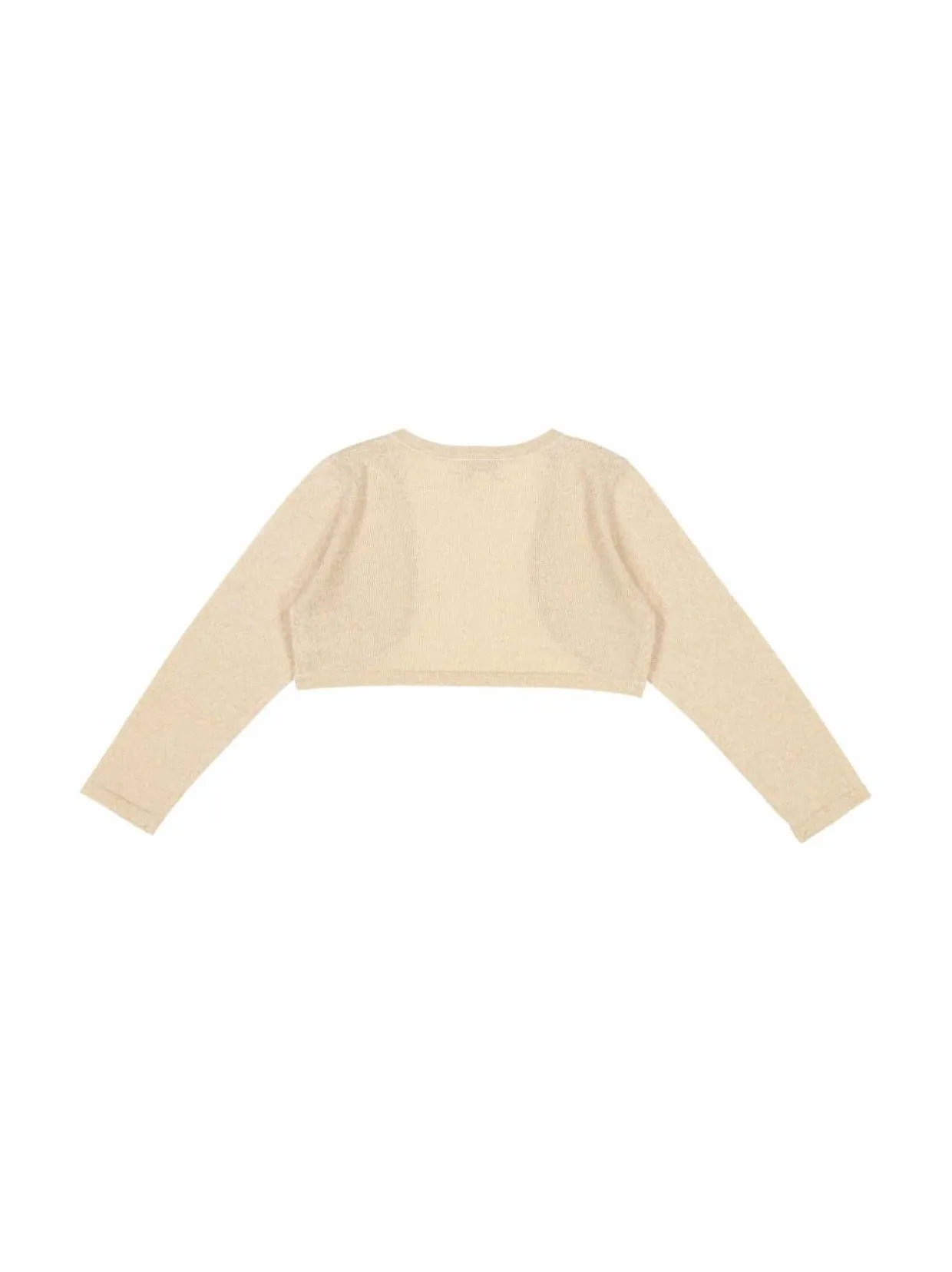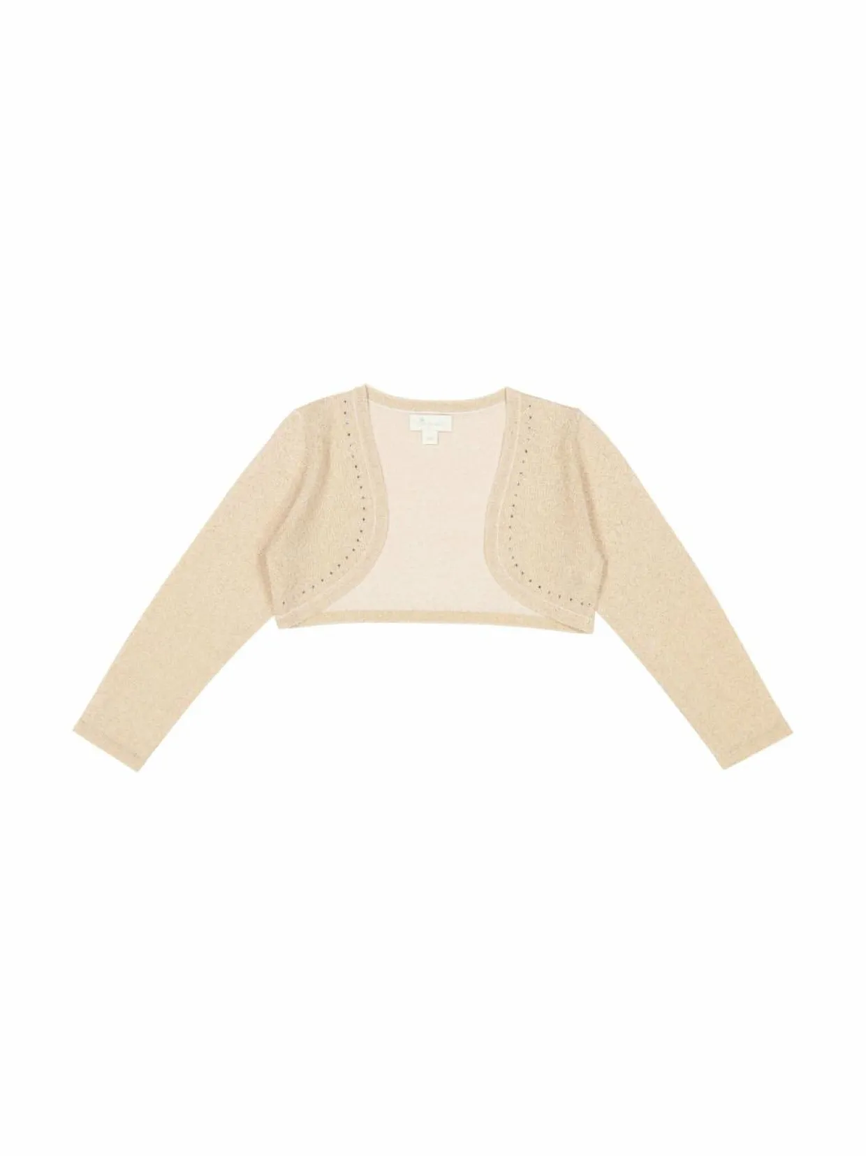 Lux-bolero on valmistettu 100 % puuvillasta ja sisältää hillitysti kimaltavaa lurex-lankaa, joka tuo viehättävää lisäsäihkettä. Pitkähihaista neuleboleroa tyylittävät timanttikoristeet.