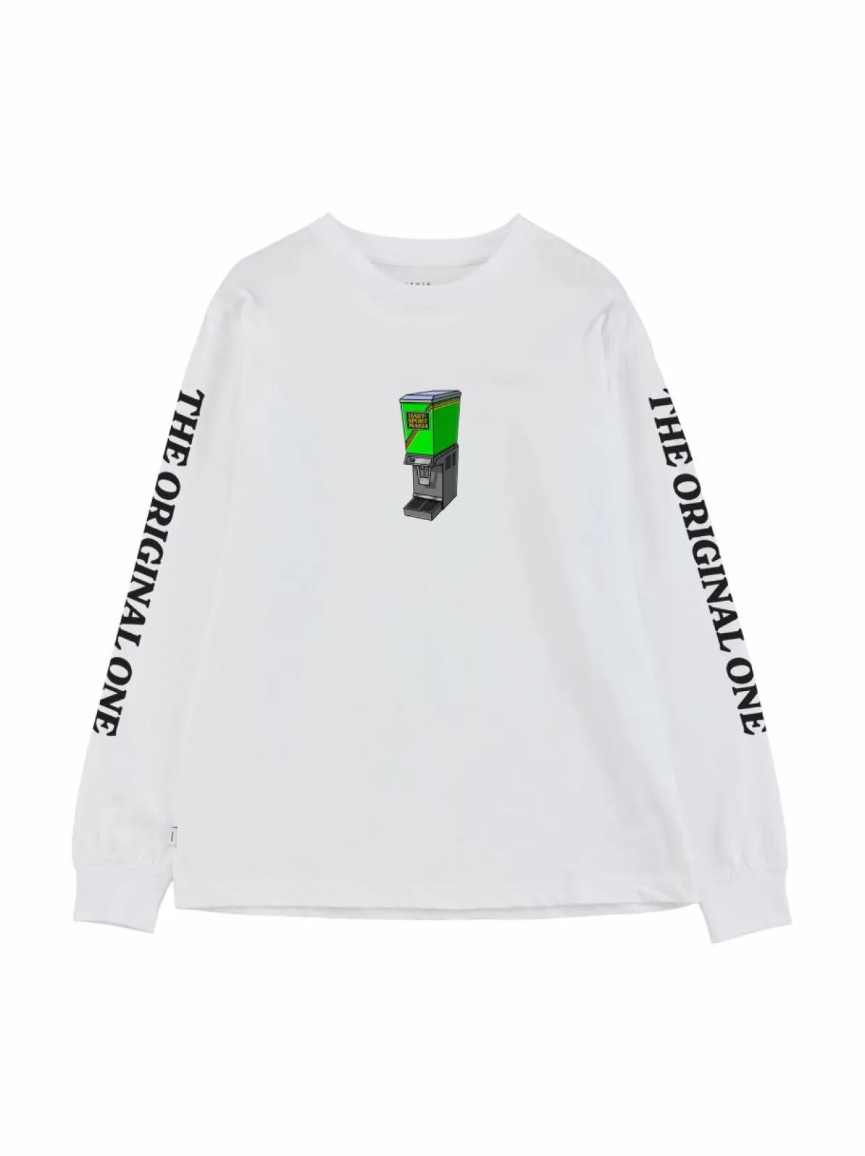 Makian Machine-collegepaita on rennosti mitoitettu ja unisex-mallinen. Sen hihojen sivuja koristavat The Original One -tekstit ja sen selkää koristaa jäähileautomaatti, joka tuo mieleen nostalgisia hetkiä. Paidan reunoilla on resorit. Materiaalina on 100 % luomupuuvilla.