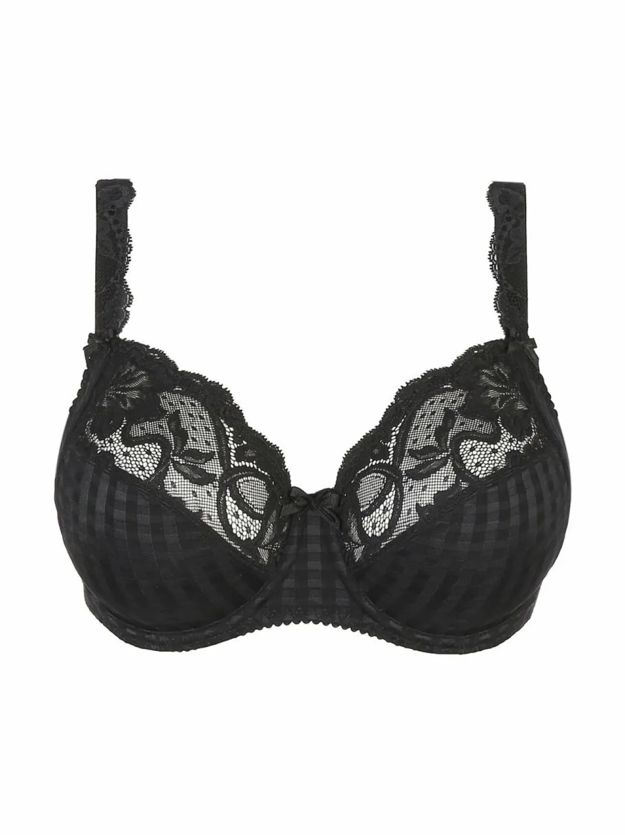 PrimaDonnan Madison-sarjan rintaliiveissä on toppaamattomat kupit ja kaarituet. Liivit on koristettu kauniilla pitsillä, ruudullisella kankaalla ja sievällä rusetilla. Liivit suljetaan takaa kahdella hakasella, ja niiden tukevia olkaimia voi säätää.