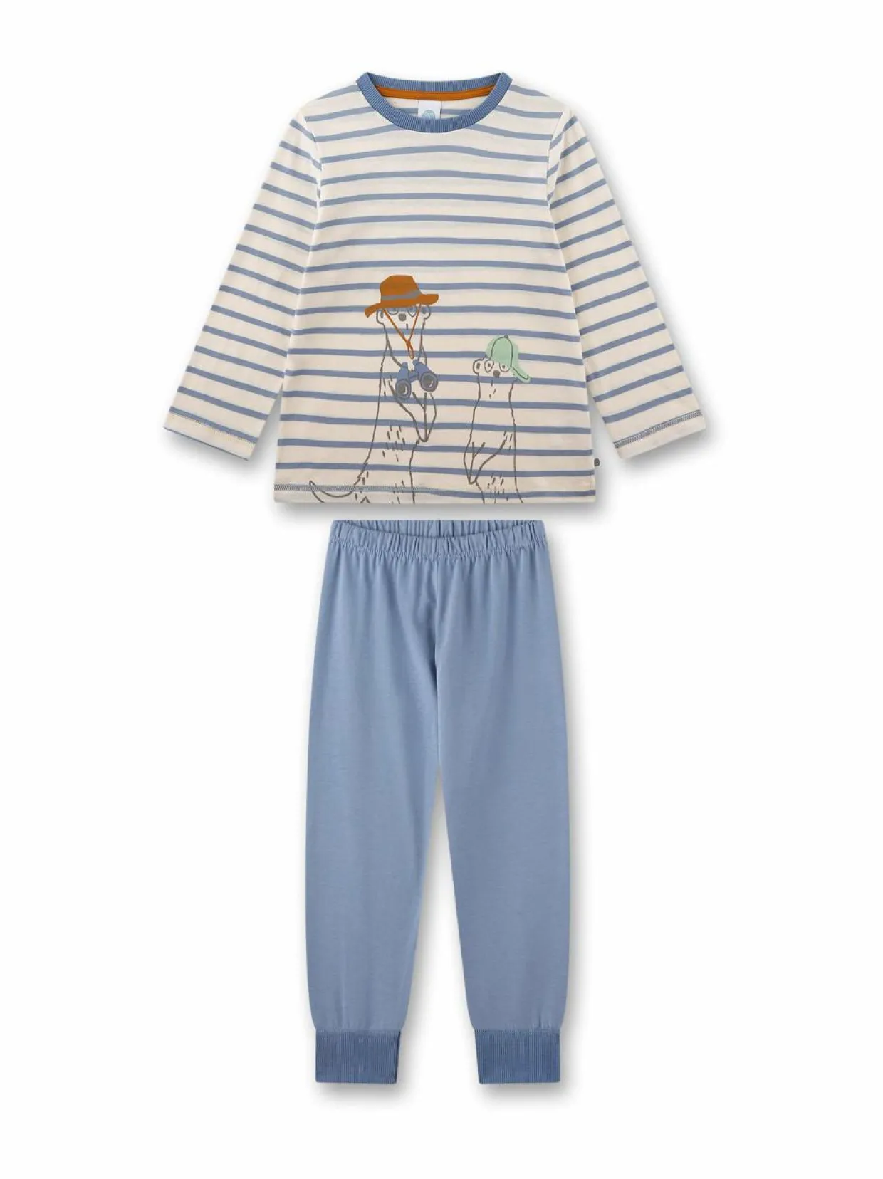 Raitakuosilla ja mangustiprintillä varustettu pehmeä pyjamasetti tuo iloa ja mukavuutta lapsen uniin. Pitkähihainen paita ja joustavat housut takaavat liikkumavapauden ja miellyttävän olon niin nukkuessa kuin rauhallisina iltahetkinä. Puuvillakangas tuntuu pehmeältä ihoa vasten ja kestää käyttöä, joten tämä pyjama sopii hyvin niin arjen rentoutumiseen kuin viikonloppujen kiireettömiin aamuihin.