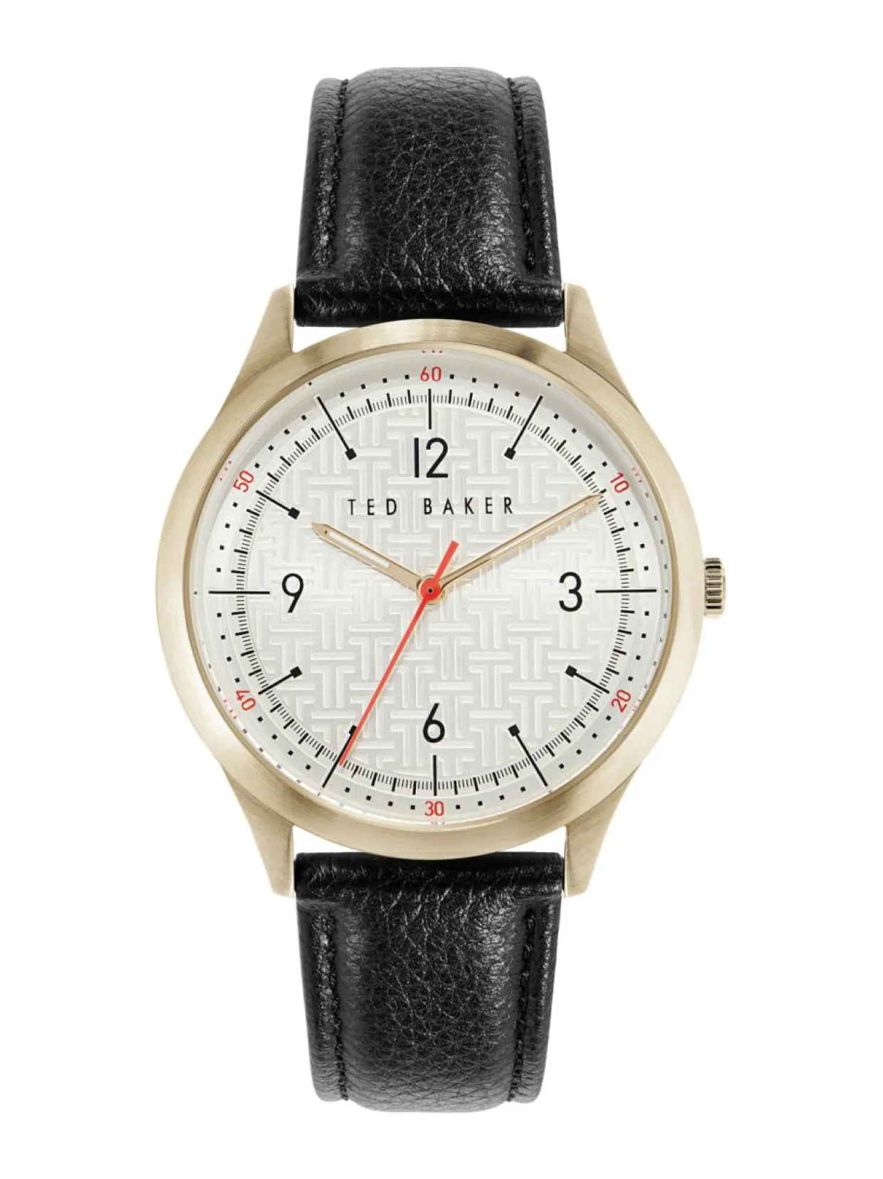 Ted Baker Manhatt 40mm mallisto sopii vaativaankin makuun. Kellon kullanvärinen runko on valmistettu ruostumattomasta teräksestä. Sen leveys on 40mm ja paksuus on 9mm. Rannekkeena tässä mallissa on musta nahkaranneke. Hopeanvärisessä taulussa on kaiverruskuviointi. Sekuntiviisari on punainen. Kellossa on mineraalilasi ja kvartsikoneisto. Kellon vesitiiviys on 5ATM. Ted Baker kelloilla on 2 vuoden takuu.
