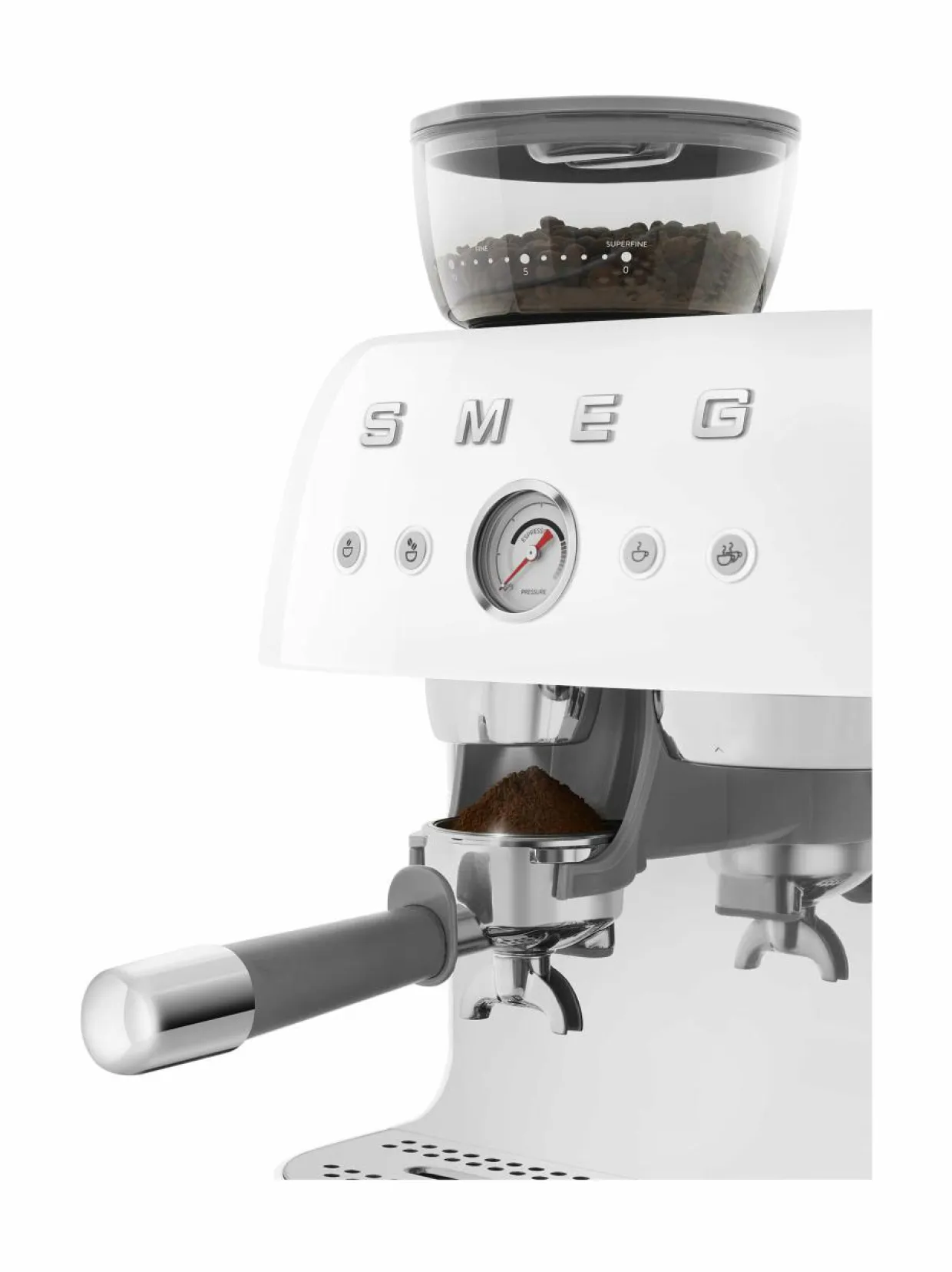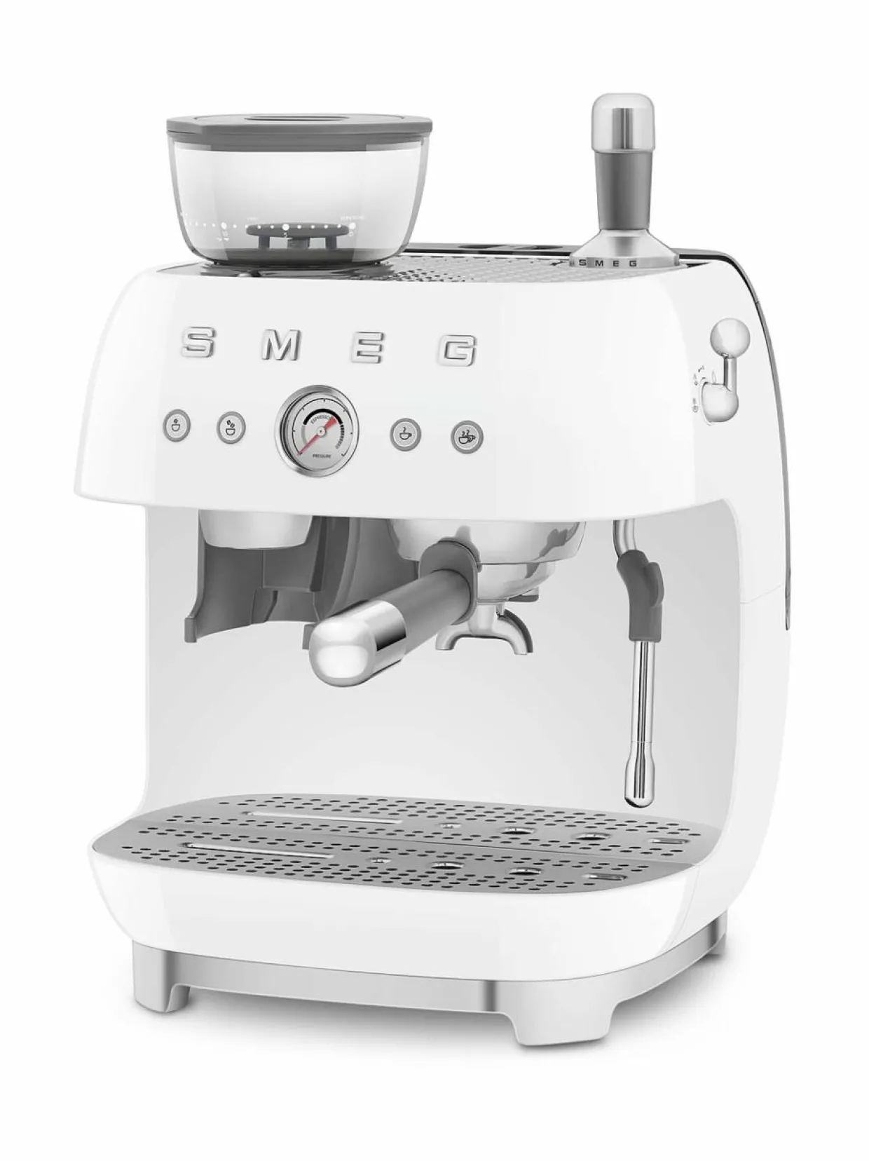 Smegin laitekokoelma on laajentunut uudella espressokeittimellä, jossa on integroitu kahvimylly – ehdoton hankinta todellisille kahvin ystäville!