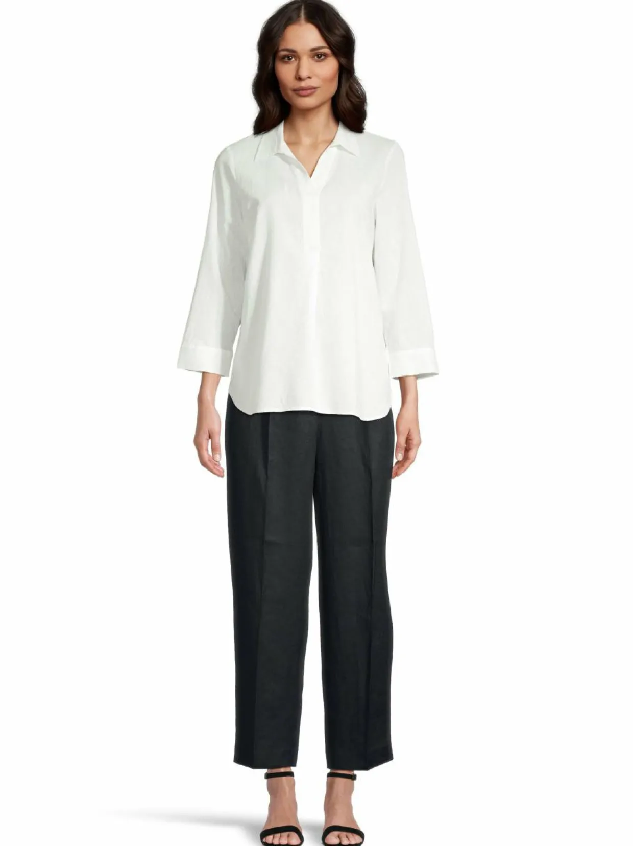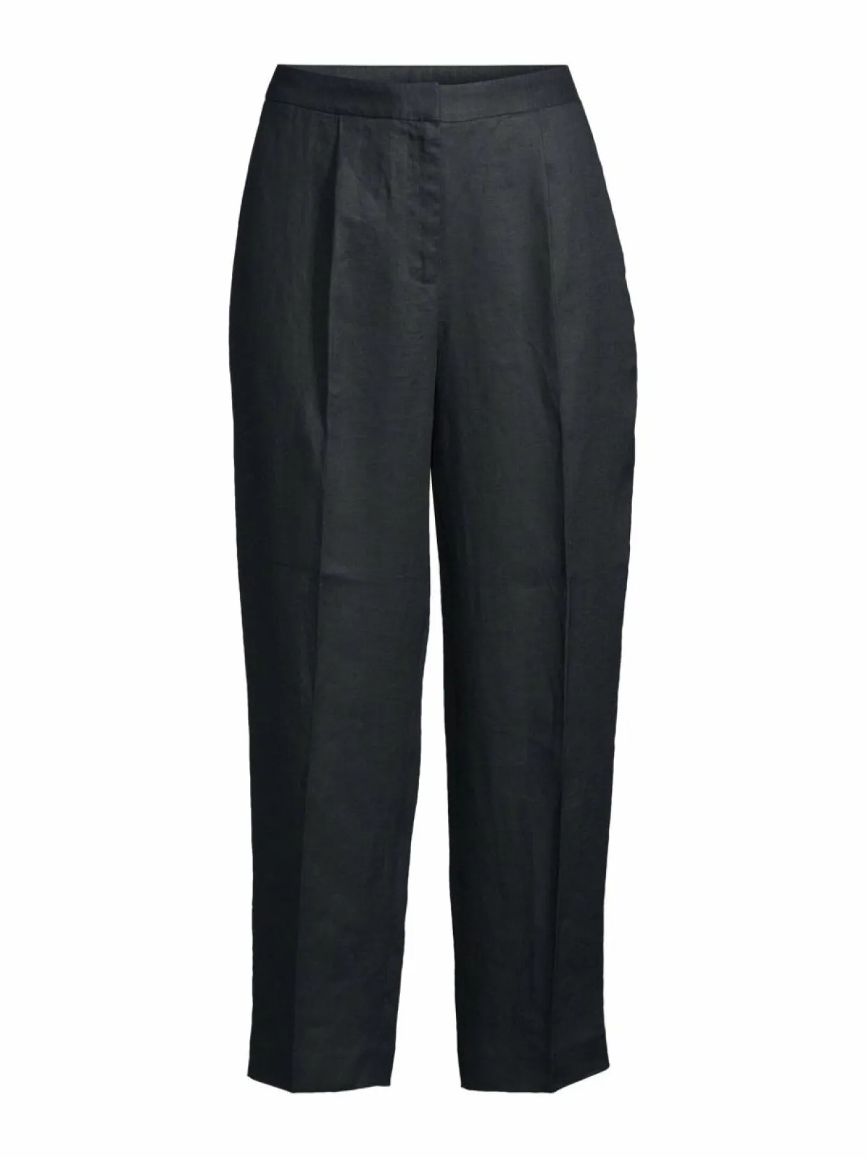 Essentials by Stockmannin Margit-housut ovat kesävaatekaapin klassikko. Housut on valmistettu kevyestä ja hengittävästä pellavasta, mikä tekee niistä ihanteellisen valinnan lämpimiin päiviin. Vajaamittainen malli ja elegantit laskokset tuovat modernin ja siistin ilmeen.