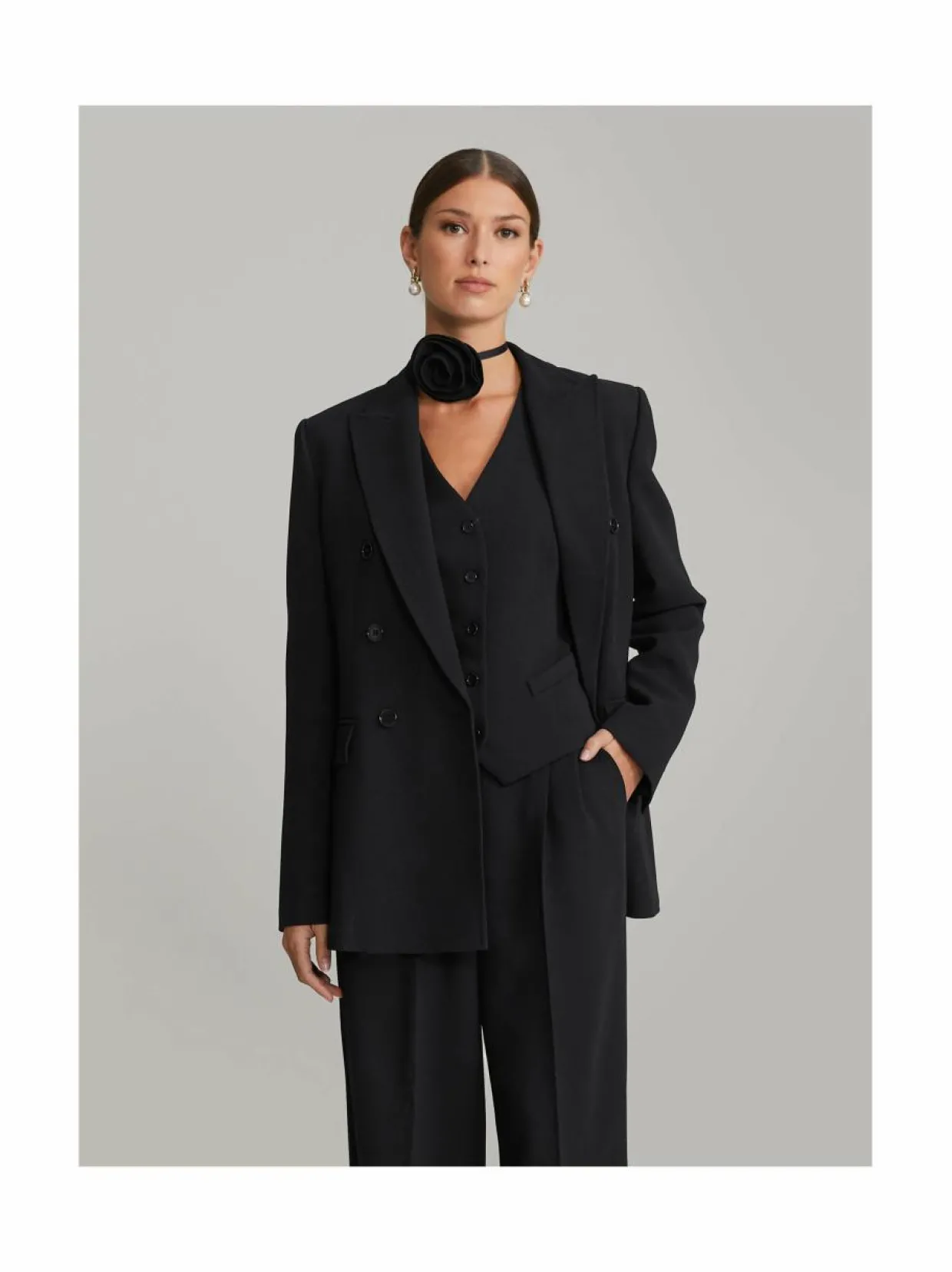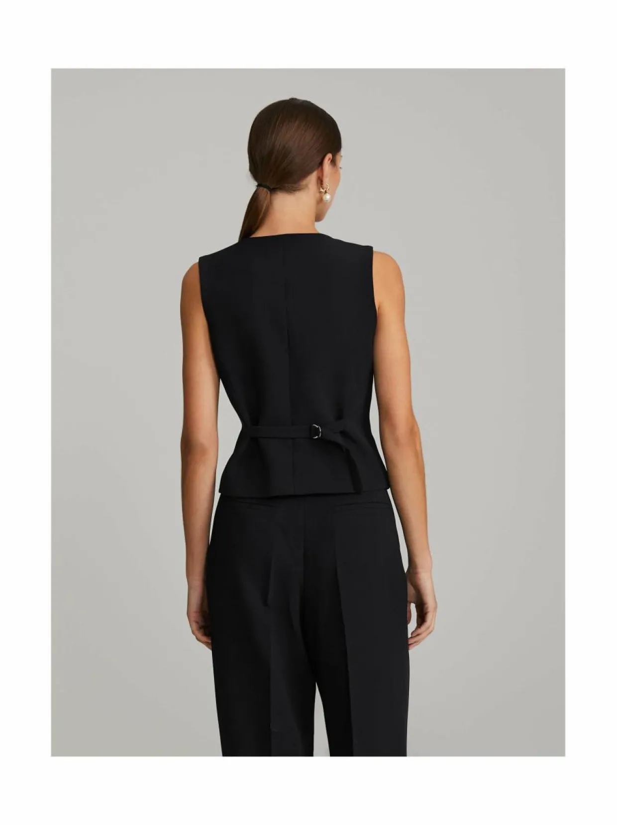 Räätälöity, tyköistuva liivi aidoilla helmiäisnapeilla. Viiden napin kiinnitys edessä, ja takana säädettävä hopeinen solki. Selkäosa on vuoritettu.