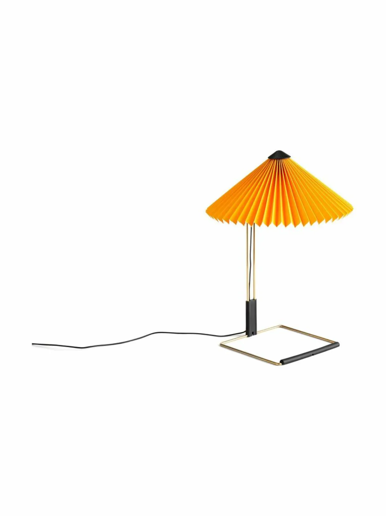 Hay Matin -pöytavalaisimessa on modernia, poeettista muotokieltä, jossa visuaalinen herkkyys yhdistyy fyysiseen jykevyyteen. Lamppu muotoutuu teräslangasta taivutetusta rungosta, joka on viimeistelty kiiltävällä messingillä ja mattamustilla yksityskohdilla. Runkoon on yhdistetty pliseeratusta puuvillakankaasta valmistettu lampunvarjostin. Valonlähteenä toimii kiinteä LED-lamppu, joka tarjoaa pehmeää, alaspäin suuntautuvaa valoa. Himmentimen avulla säädät valon määrää.