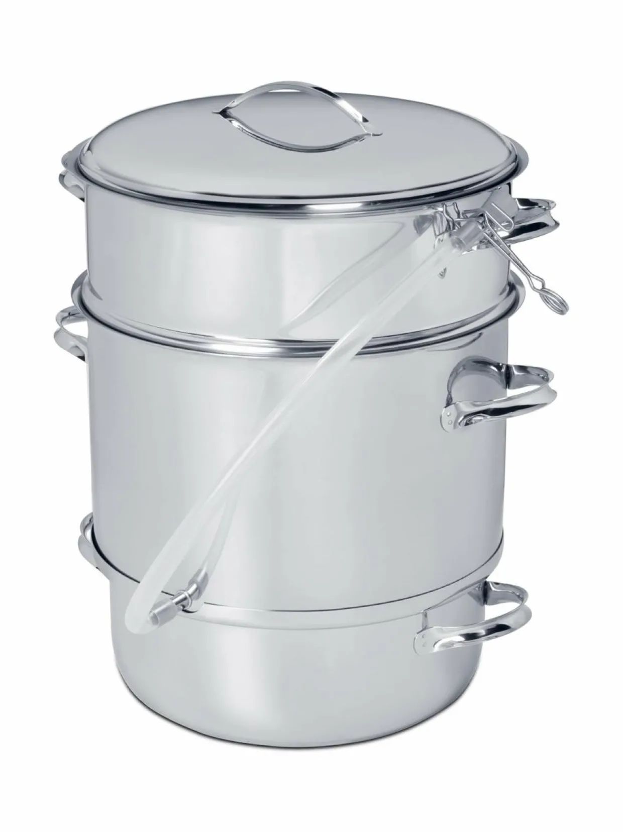 Pakkaus sisältää kattavan reseptivihkon. Reseptivihkossa on vinkkejä mm. mehustamiseen, hyytelöiden, soseiden ja viinin valmistamiseen. Osat voidaan pestä astianpesukoneessa.Tuotenumero157388273 MateriaaliTerästä Hoito-ohjeetKonepesun kestävä VäriSTEEL Koko11 l Avainsanatruostumatonta terästä