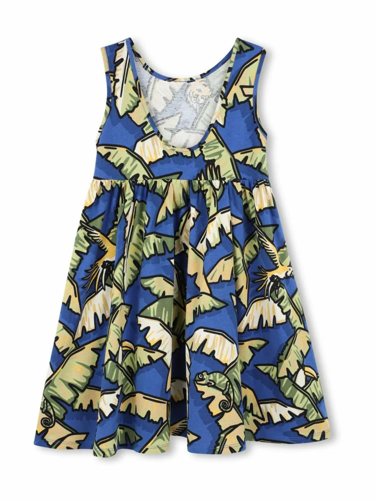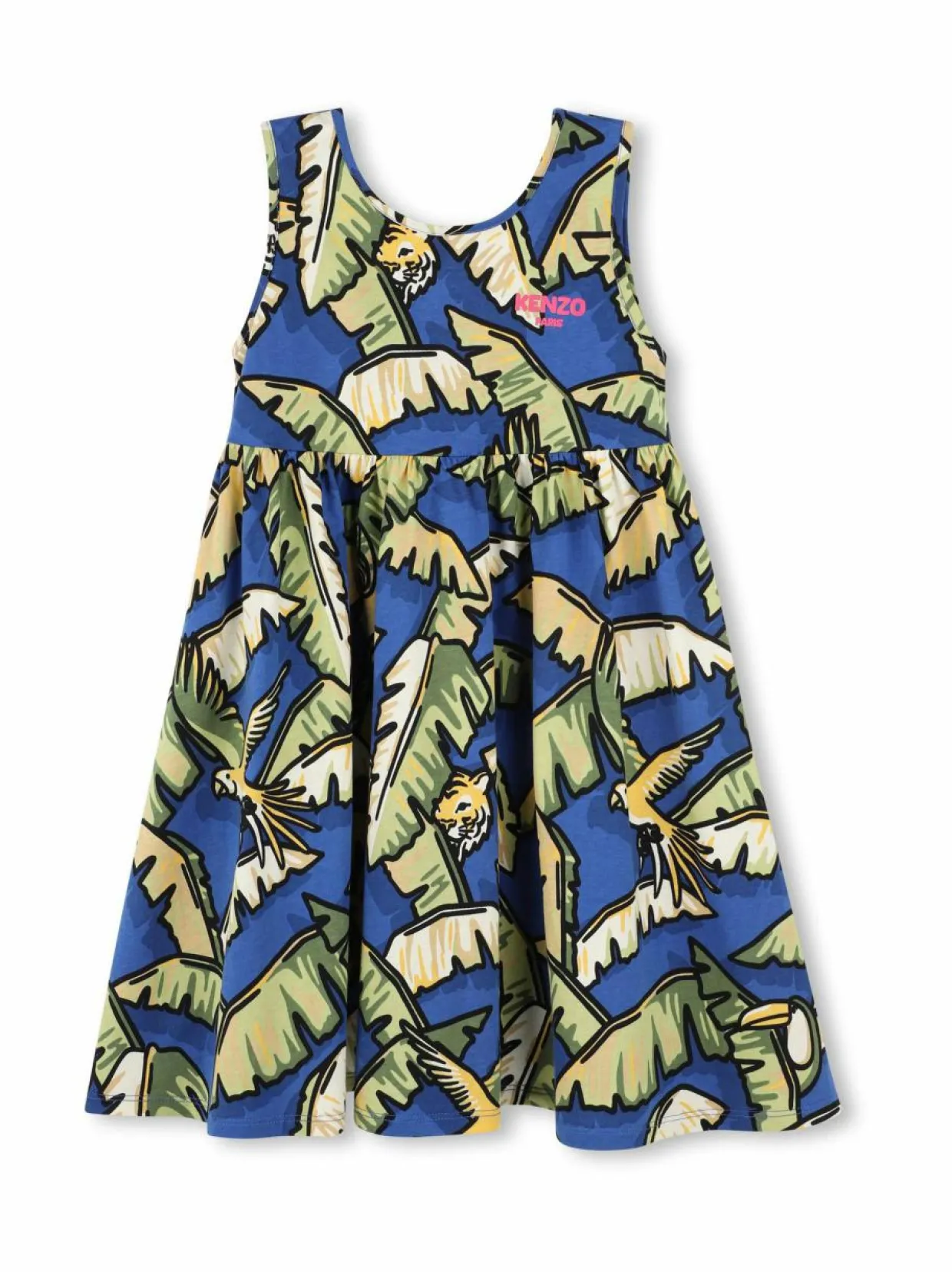 Kenzon mekko on valmistettu pehmeästä puuvillasta ja siinä on kaunis lehtikuvio. A-linjainen mekko on hihaton ja siinä on pyöreä pääntie. Tämä mukava ja hengittävä mekko sopii täydellisesti kesäpäiviin.