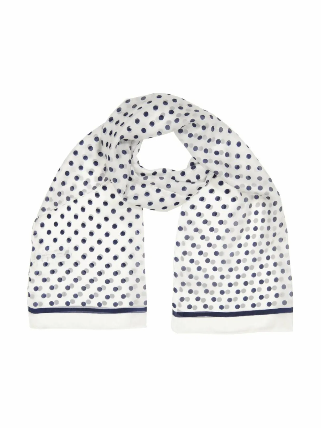 Tuotenumero170073521 Materiaali100 % silkki Hoito-ohjeetPesu käsin kylmässä vedessä ValmistusmaaIntia VäriOFF WHITE/BLUE Koko50 x 180 cm Avainsanatsilkki, huivi, pistehuivi, polka dot huivi, pilkullinen huivi