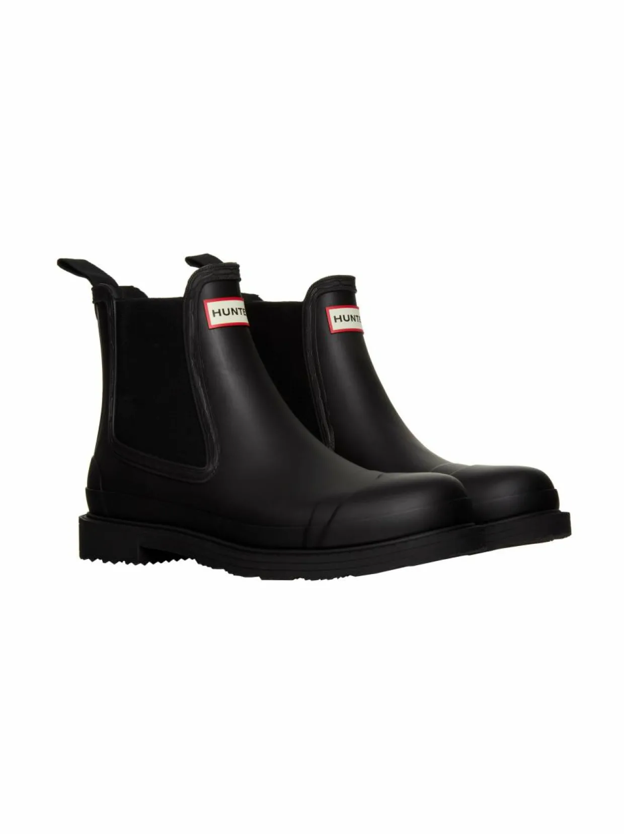 Men’s Commando Chelsea on 100 % vedenpitävä ja mukava kumisaapas. Käytännöllinen lyhytvartinen saapas sopii täydellisesti sadepäiviin, olipa sitten kävelylenkkejä metsässä tai kaupungin kaduilla. Valmistettu kestävästä kumista, vuori ja pohjallinen kierrätettyä polyesteriä. Mattapintaisissa saappaissa on pieni kanta ja edessä Hunterin logo. Varressa olevat venykkeet ja vetolenkki helpottavat pukemista. Kuvioitu ulkopohja antaa hyvän pidon kaikilla alustoilla ja takaa, että kumisaappaat kestävät käyttöä.