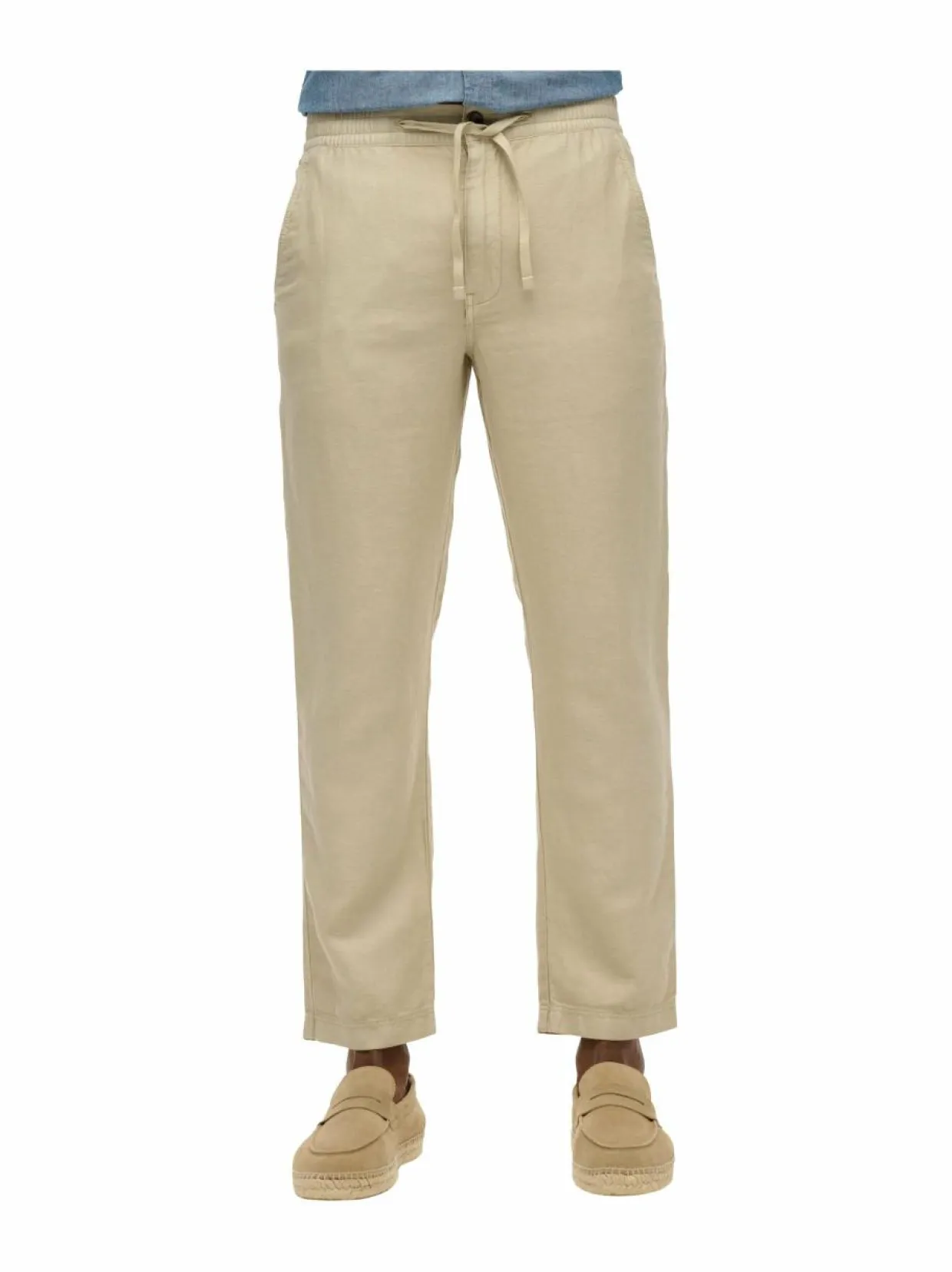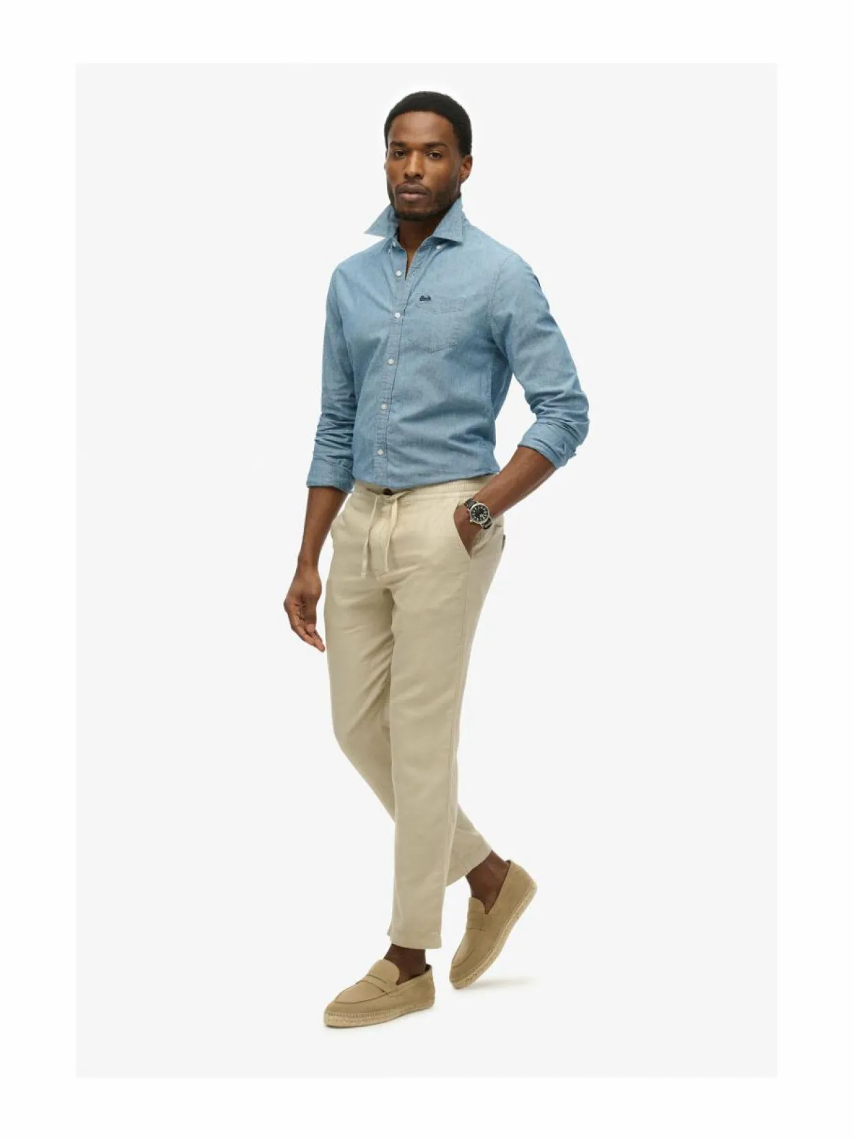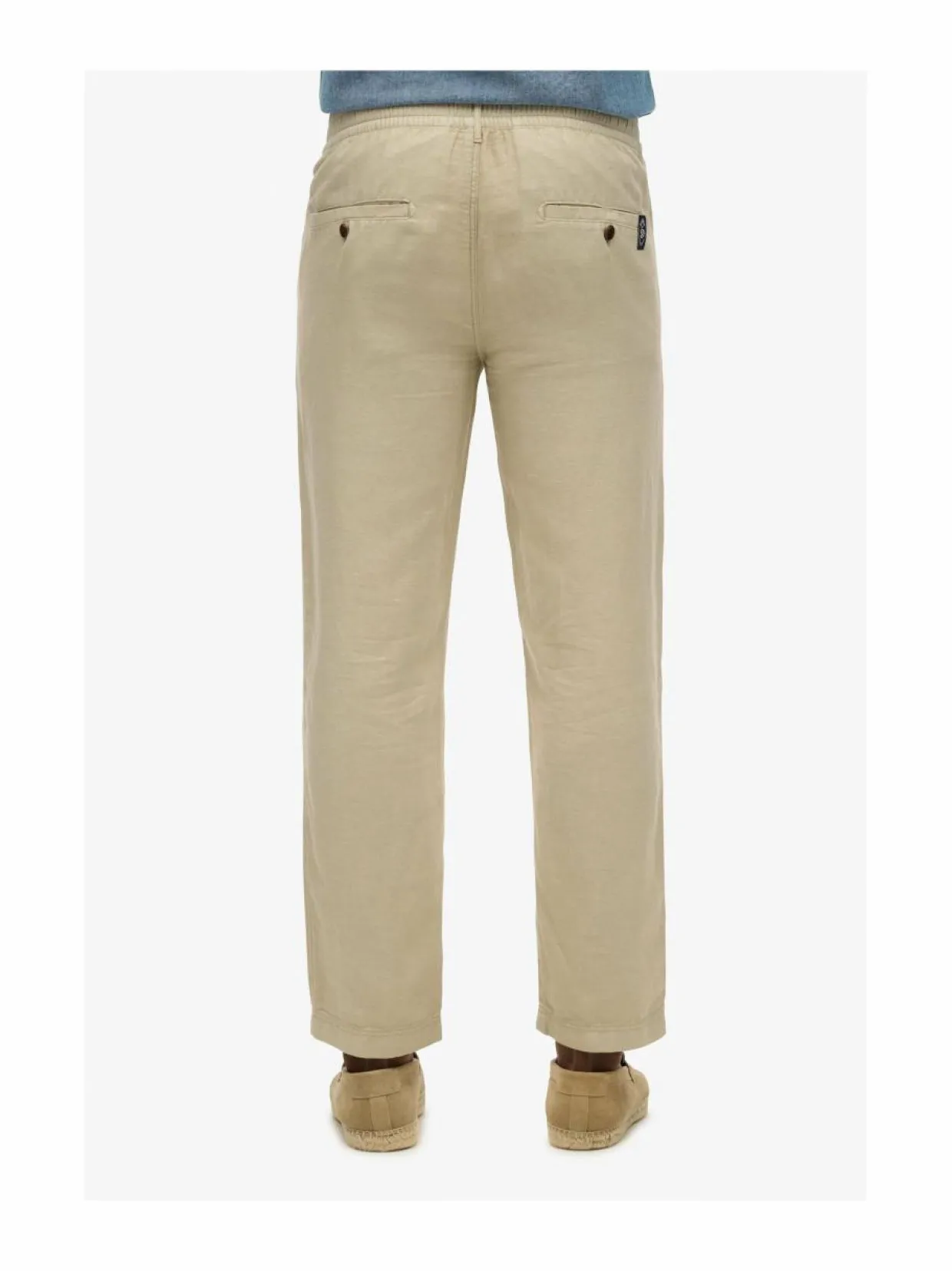 Superdryn Merchant Linen -pellavahousut ovat mukavat ja hengittävät. Ne ovat valmistettu 58 % pellavasta ja 42 % luomupuuvillasta. Niissä on joustava vyötärö kiristysnauhoilla. Ne sopivat täydellisesti kesäpäiviin. Housuissa on suorat lahkeet ja ne ovat hieman leveämmät vyötäröltä. Ne sopivat täydellisesti rentoon tyyliin. Mallissa on kaksi sivutaskua ja kaksi takataskua.