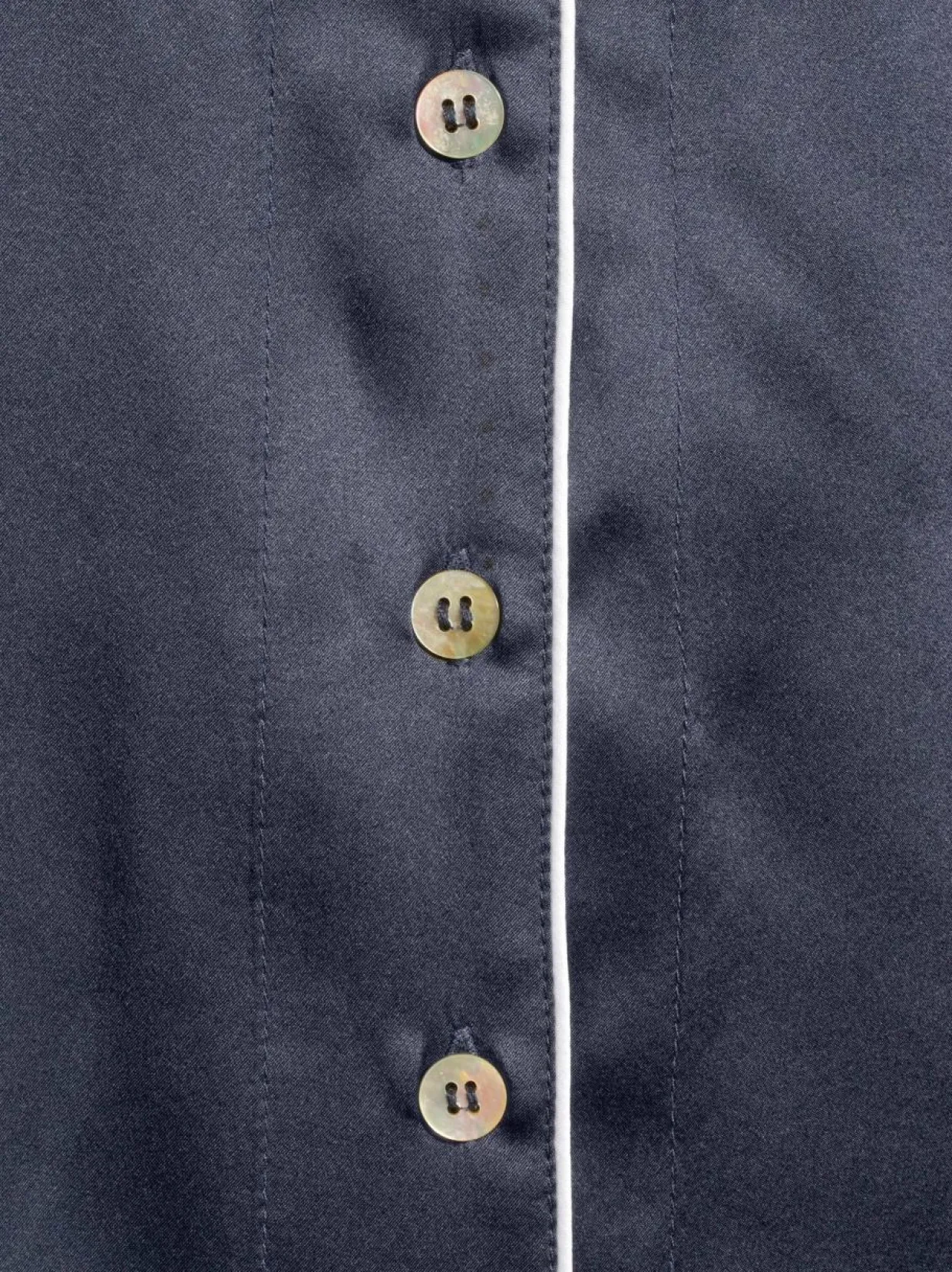 Ylellisestä silkkisatiinista valmistettu setti, johon kuuluu yöpaita ja yöhousut.