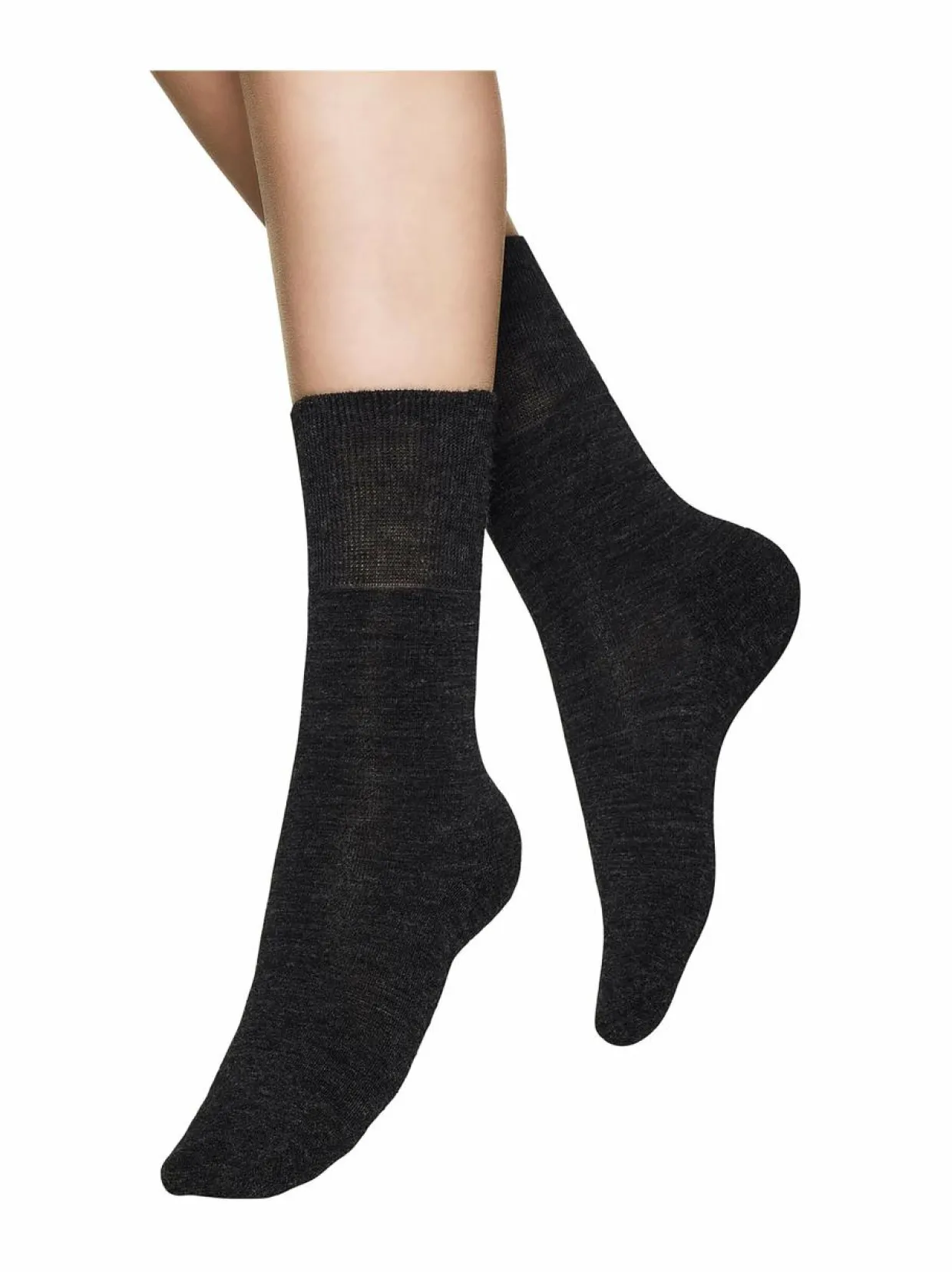 Hengittävät ja lämpimät sukat ovat pehmeää merinovilla-polyamidia, joka tuntuu miellyttävän sileältä ihoa vasten. Materiaaliin on lisätty myös runsaasti joustoa. Mukavan leveä resori varressa lisää käyttömukavuutta.