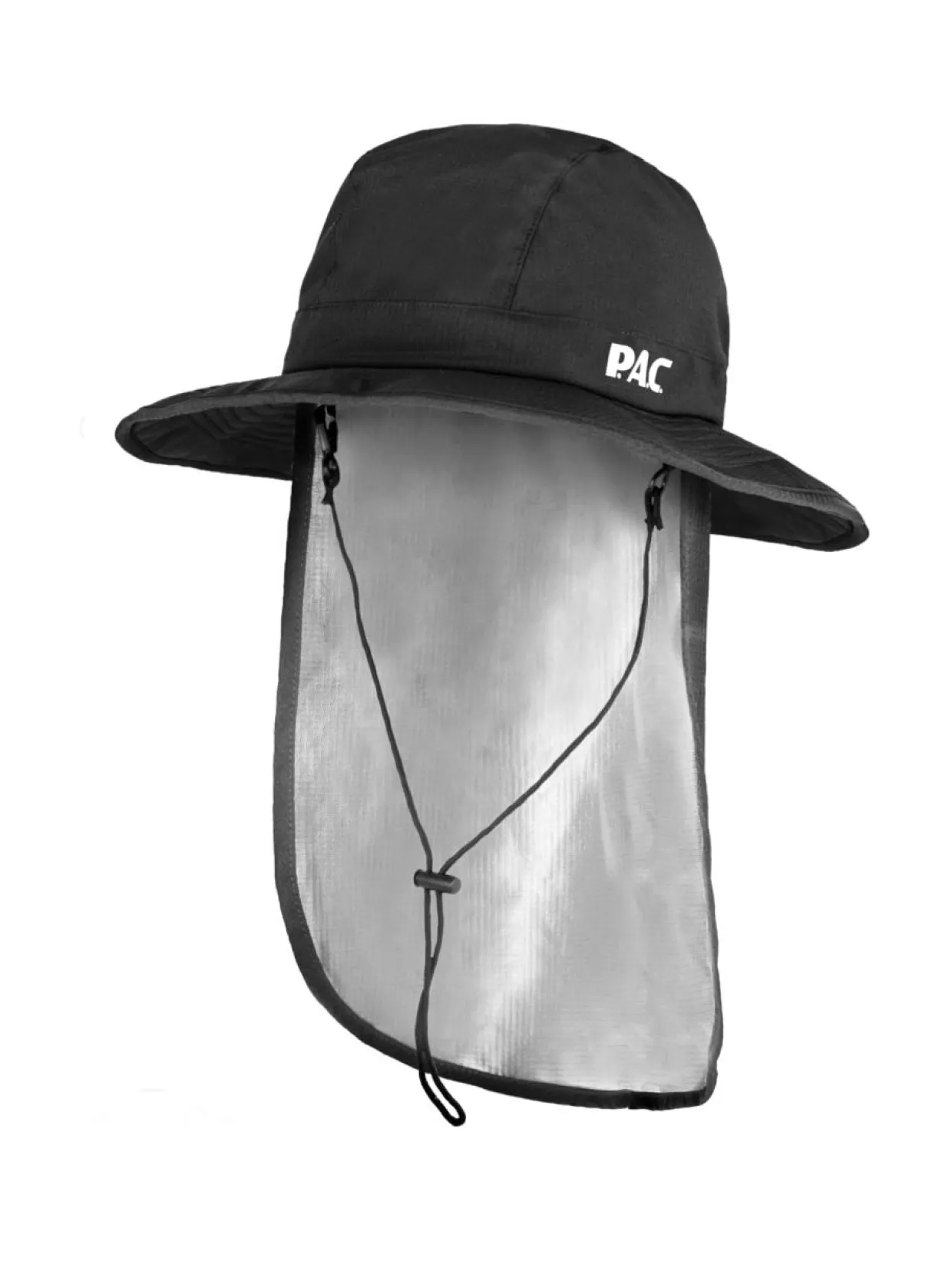 P.A.C.:n Gore-Tex hattu myrkyttömällä punkki- ja hyttyskarkotteella. Hatussa on vedenpitävä kalvo ja sisällä hengittävää materiaalia oleva verkko. Hattu on tuulenpitävä sekä se suojaa UV-säteiltä. Hatussa on hengittävä hikinauha ja sen saa tarvittaessa pakattua pieneen tilaan.