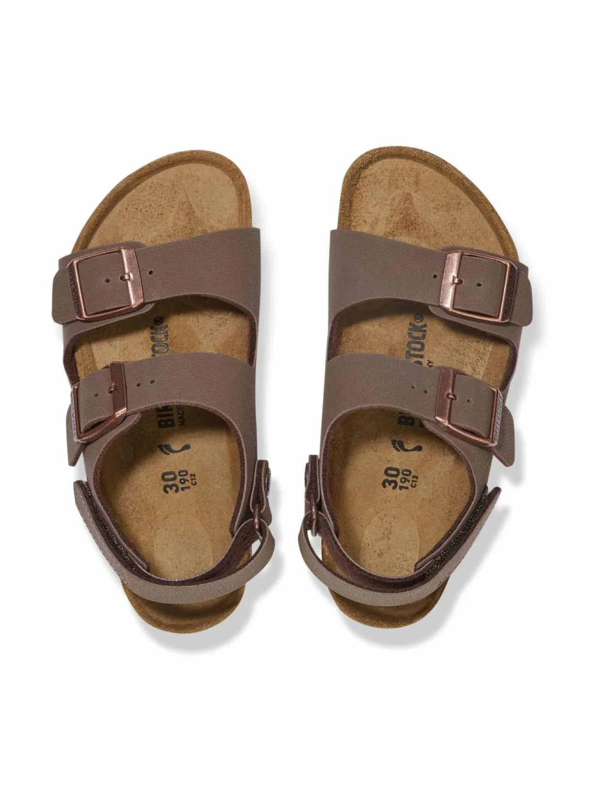 Birkenstockin Milano AS Mocca -sandaalit ovat mukavat ja tyylikkäät kengät lapsille. Sandaalit on valmistettu Birko-Flor -materiaalista, joka on pehmeää ja hengittävää. Niissä on säädettävät remmit, jotka takaavat hyvän istuvuuden. Pohjallinen on valmistettu luonnonkorkista. Sandaalit sopivat täydellisesti kesäpäiviin ja niillä on mukava kävellä. Ne ovat kevyet ja helpot pukea jalkaan.