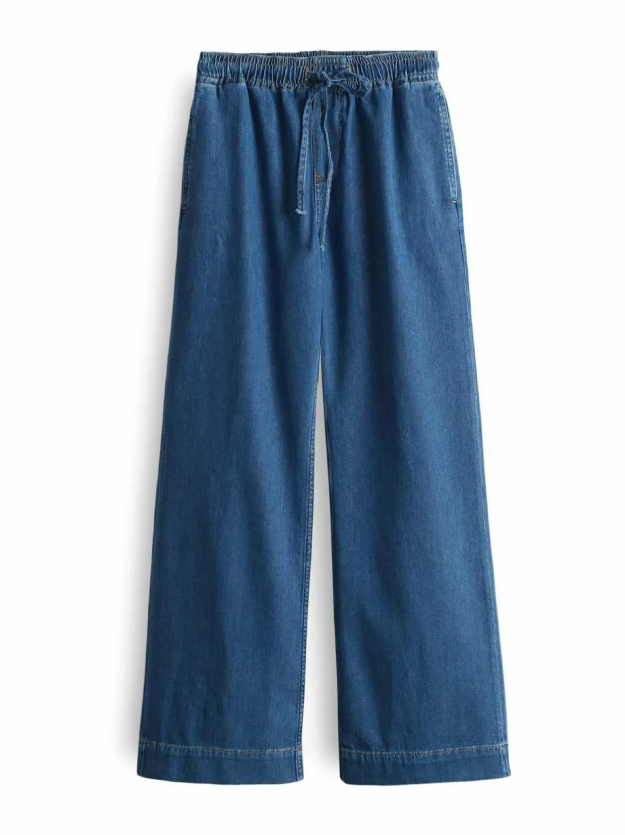 Materiaali67 % puuvilla, 33 % lyocell Hoito-ohjeetKonepesu 30 °C ValmistusmaaTurkki Väri70221 MID COASTAL BLUE Avainsanatfarkut, palazzo housut, leveät housut, kevyet farkut, denimhousut, opus