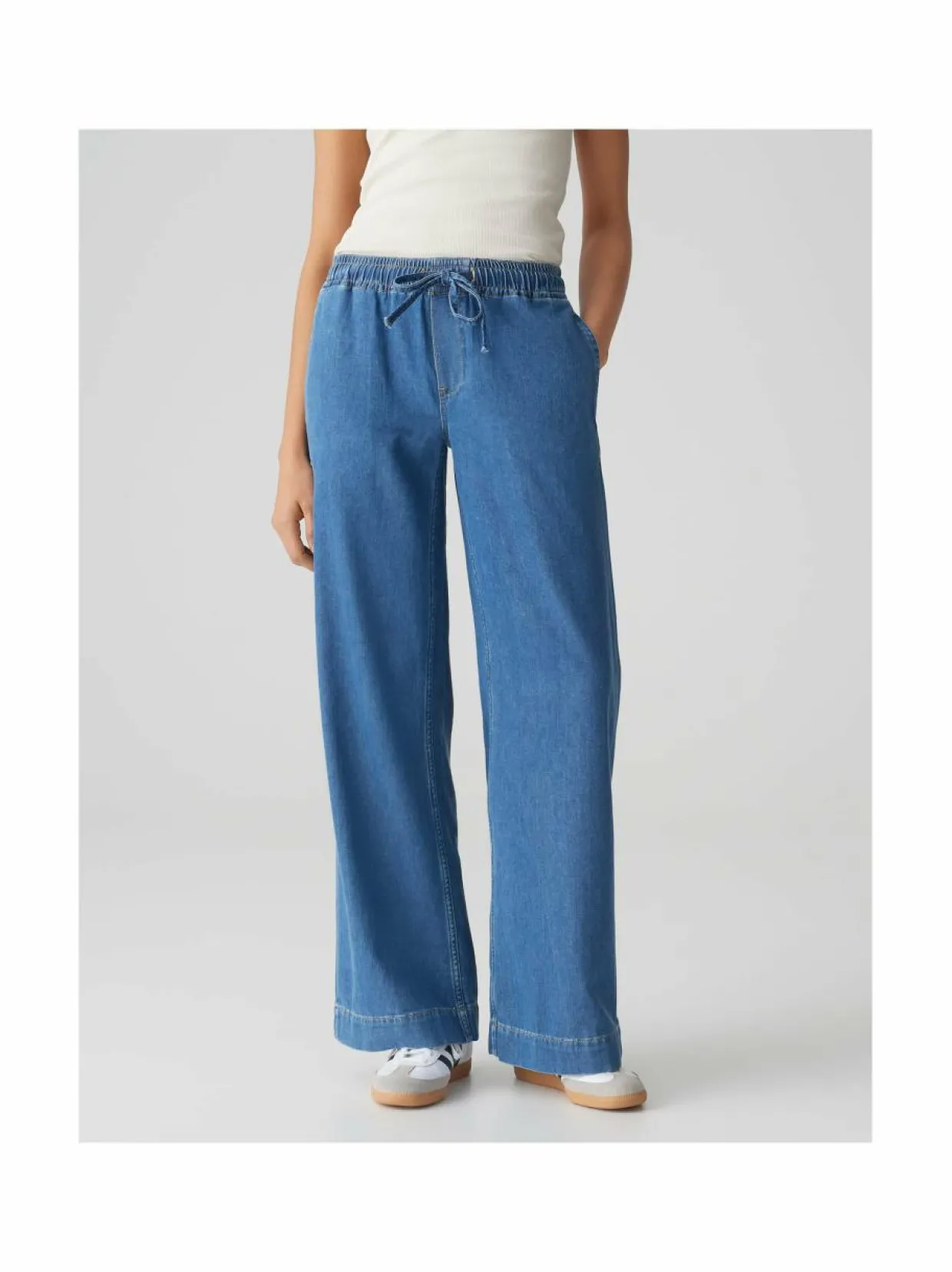 Elegantit Palazzo-malliset farkut Opus merkiltä. Tässä housumallissa on joustava sekä säädettävä vyötärölinja ja yhteensä neljä taskua. Lahje on mukavan leveä ja suora. Materiaalina on käytetty kevyttä puuvilla-lyocellia.