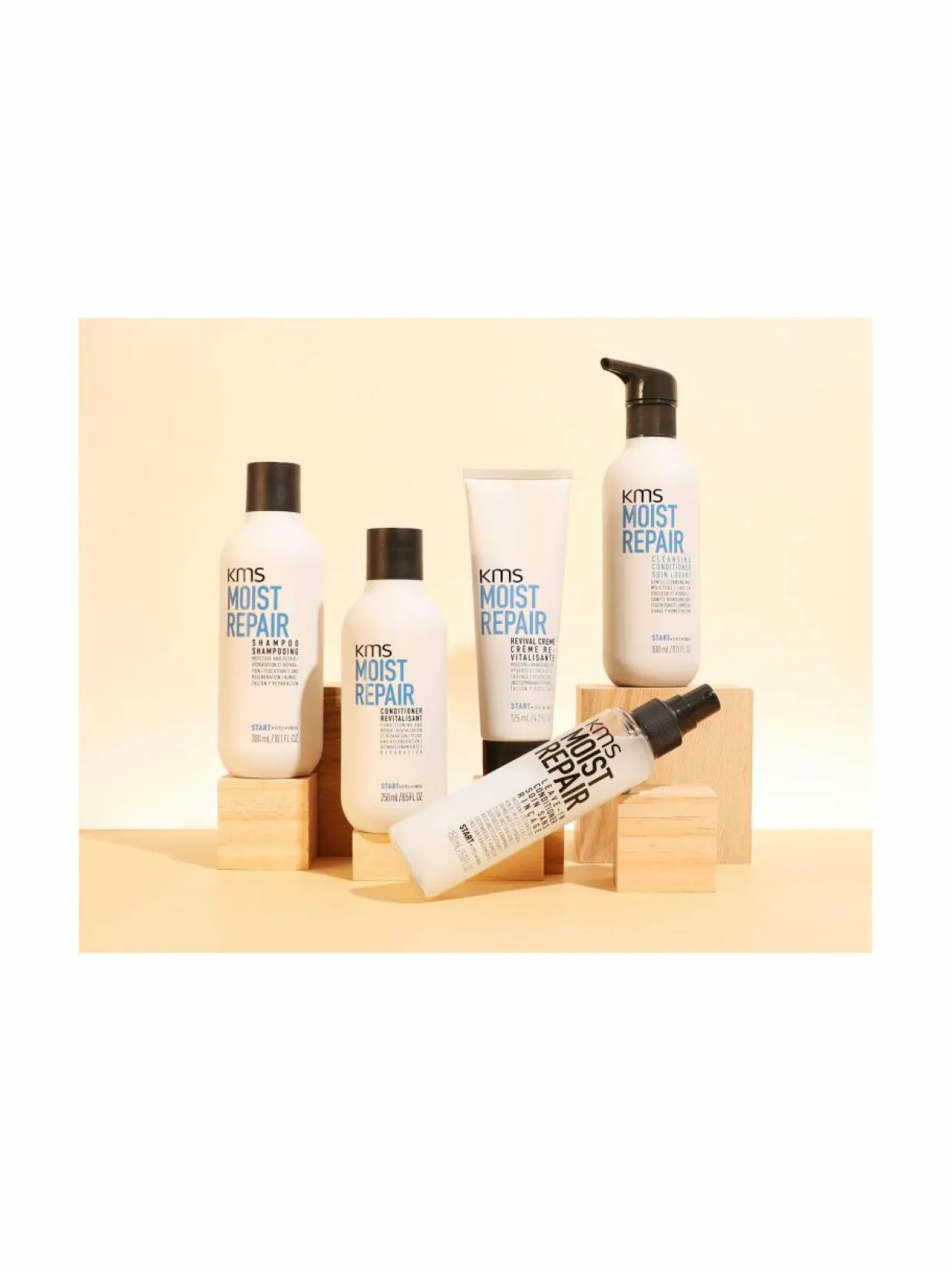 KMS Moistrepair-hoitoaine kosteuttaa hiuksia ja korjaa vaurioita tehden hiuksista helpommin selvitettävät. Lopputuloksena ihanan sileät ja pehmeät hiukset.