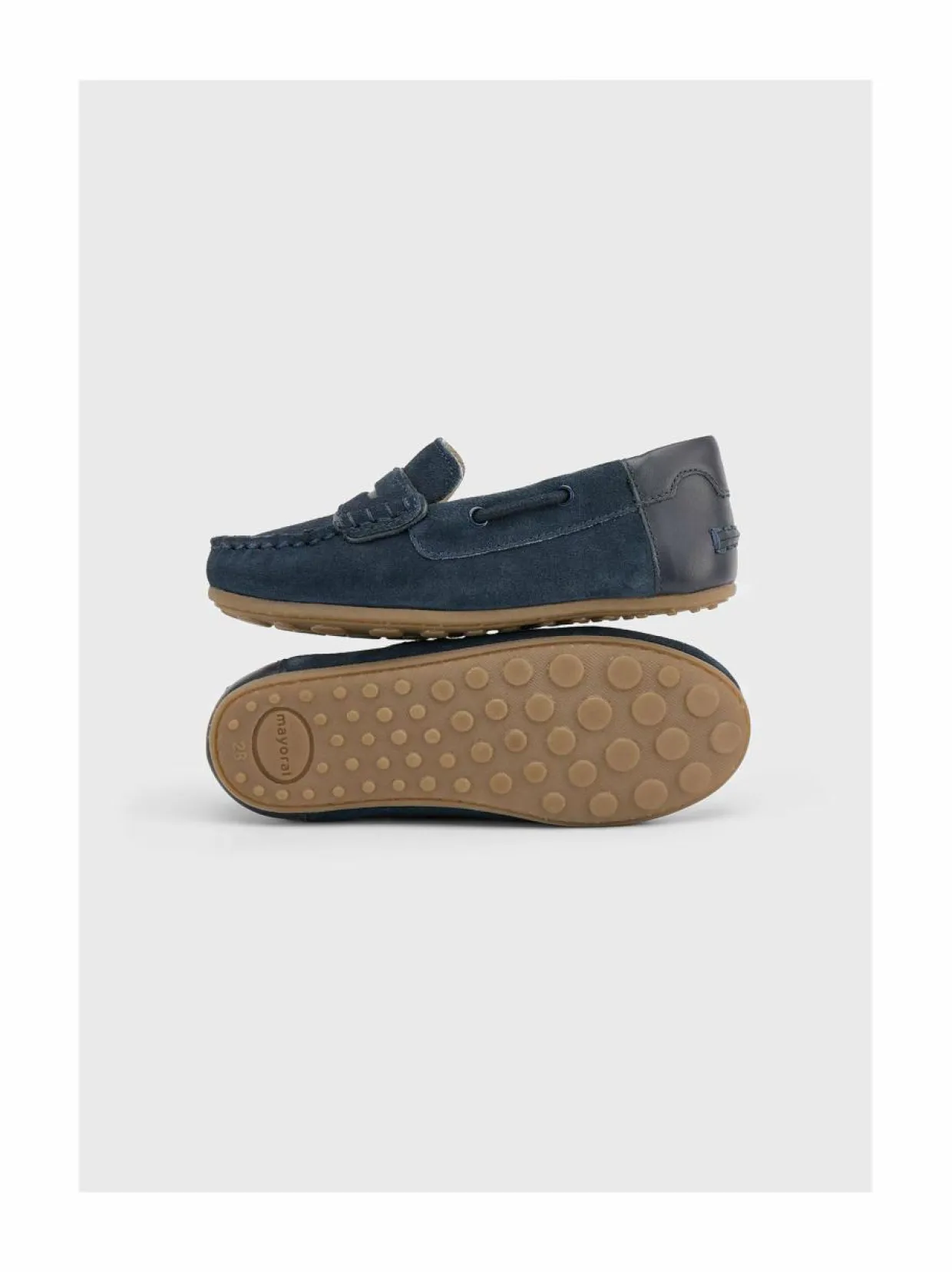 Mukavat lasten mokkasiinit Mayoralilta. Päällinen on pehmeää ja taipuisaa mokkanahkaa. Kantapäässä on sileä nahkapaneeli. Kuminen ulkopohja tarjoaa hyvän pidon. Tämä kenkämalli on ihanteellinen päivittäiseen käyttöön.