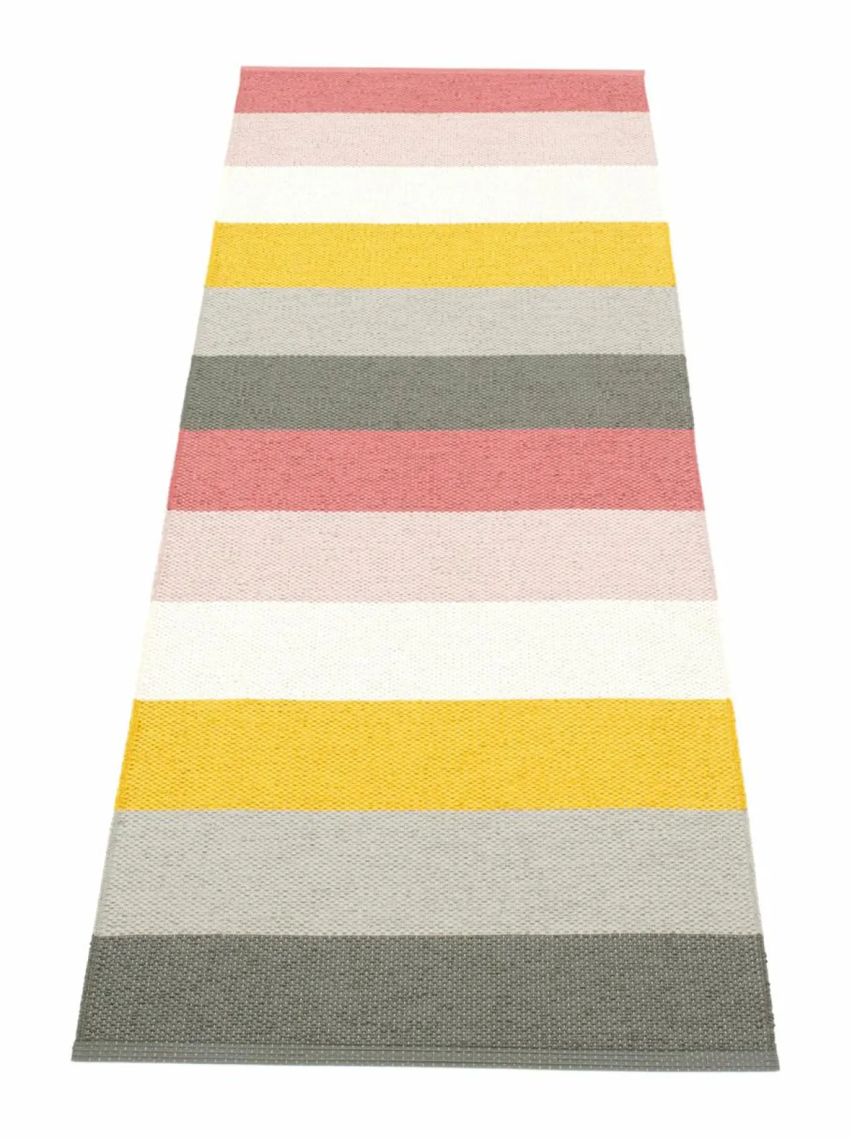 Ruotsin Taalainmaalla käsityönä valmistetut Pappelina-muovimatot ilahduttavat raikkaan skandinaavisella ilmeellään ja käytännöllisyydellään. Polyesteriloimesta ja ftalaatittomasta muovista valmistetut matot sopivat kodin kaikkiin tiloihin ja puhdistuvat helposti käsin tai koneessa. Raidallisesta Molly-muovimatosta on saatavilla useita eri värejä ja kokoja, joista löytyy helposti sopiva matto niin kylpyhuoneeseen, eteiseen, keittiöön kuin lastenhuoneeseenkin.
