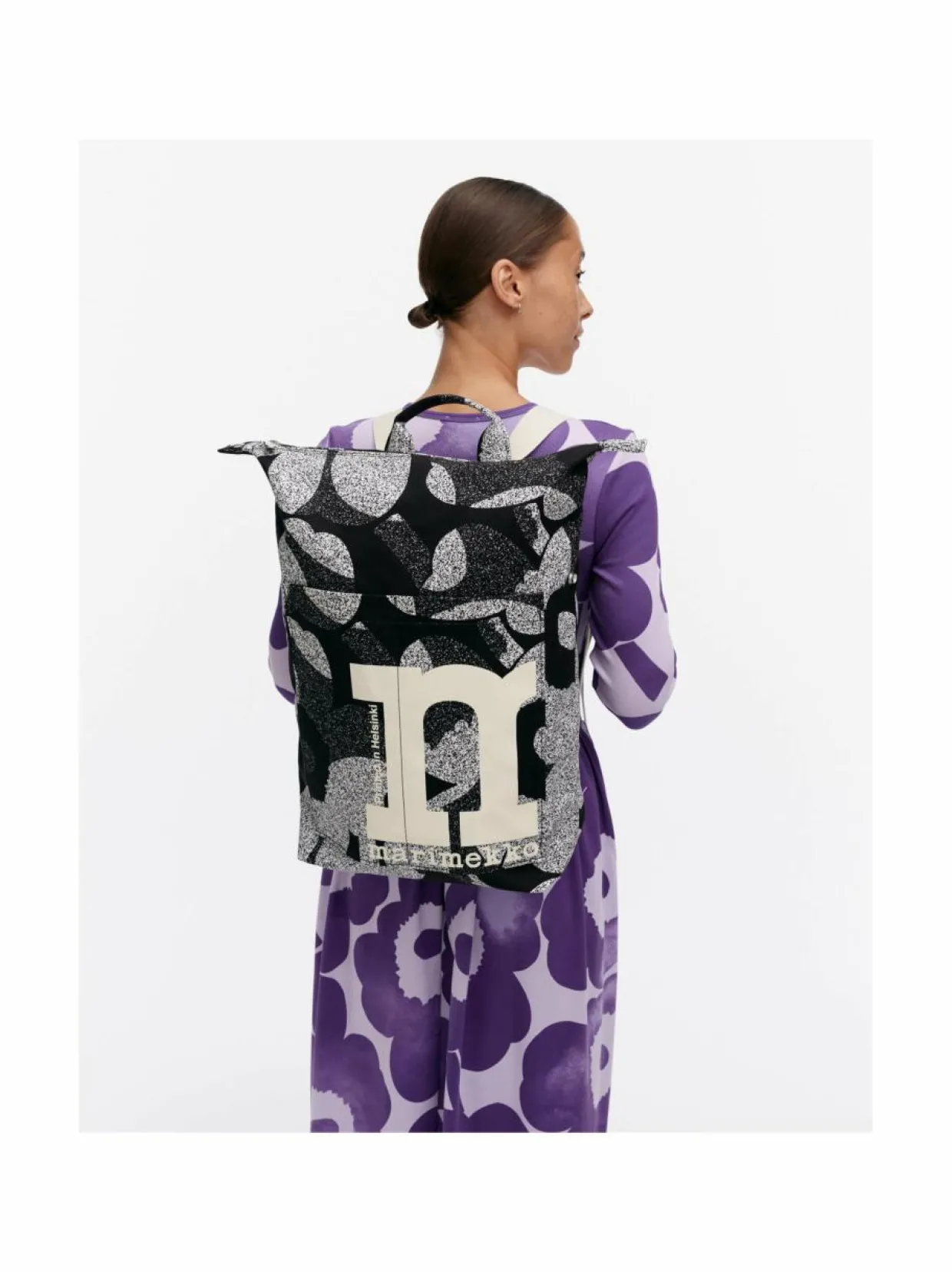 Tämä reppu on valmistettu kestävästä puuvillasta, ja siinä on ikoninen Unikko-kuviointi, jonka Maija Isola loi vuonna 1964. Reppu on varustettu vetoketjulla, säädettävillä olkahihnoilla ja kahdella avoimella taskulla edessä. Sisäpuolella on tilava tasku, joka sopii kannettavalle tietokoneelle. Vetoketjun päät voidaan kiinnittää sivuihin neppareilla. Reppu on kooltaan 42.5 x 38.5 x 14 cm.