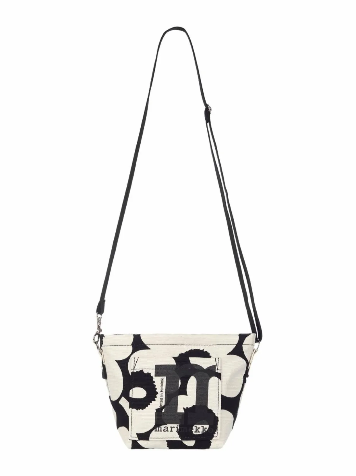 Mono Mini Crossbody on valmistettu valkaisemattomasta luomupuuvillakankaasta, jossa on Helsingissä painettu Unikko-kuvio. Olkalaukussa on vetoketjukiinnitys, avotasku ulkopuolella ja säädettävä olkahihna.