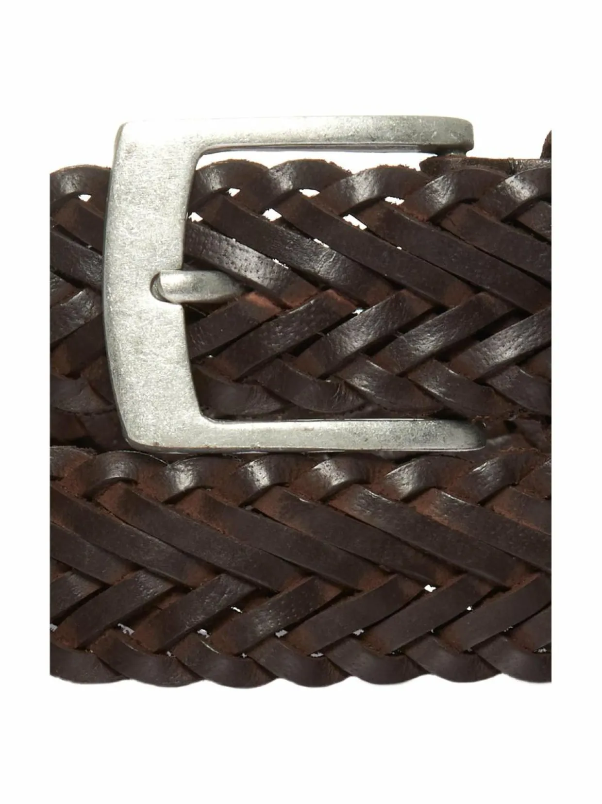 Tämä punottu vyö on valmistettu 100 % kestävästä nahasta ja siinä on hopeanvärinen metallisolki. Vyö on klassinen lisä miesten asuun. Vyö on helppo säätää sopivaksi ja se sopii useimpiin housuihin.