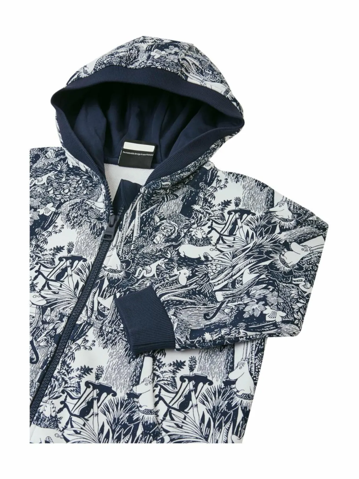 Taaperoiden huppari Moomin Skvalp on tarpeellinen lisä lapsesi varusteisiin. Se on valmistettu joustavasta, pehmeästä collegeneuloksesta, joka takaa mukavuuden ja liikkumavapauden. Neuloksen luomupuuvilla imee kosteutta, kun taas kierrätetyt polyesterikuidut parantavat kulutuksenkestoa ja nopeuttavat kuivumista pesun jälkeen. Hupussa, hihansuissa ja helmassa olevat resorit parantavat istuvuutta. Vetoketju edessä helpottaa pukemista ja riisumista, ja taskut lisäävät vaatteen käytännöllisyyttä. Kaiken kruunaa hupparin hauska design, kurkistus Muumien kiehtovaan maailmaan!