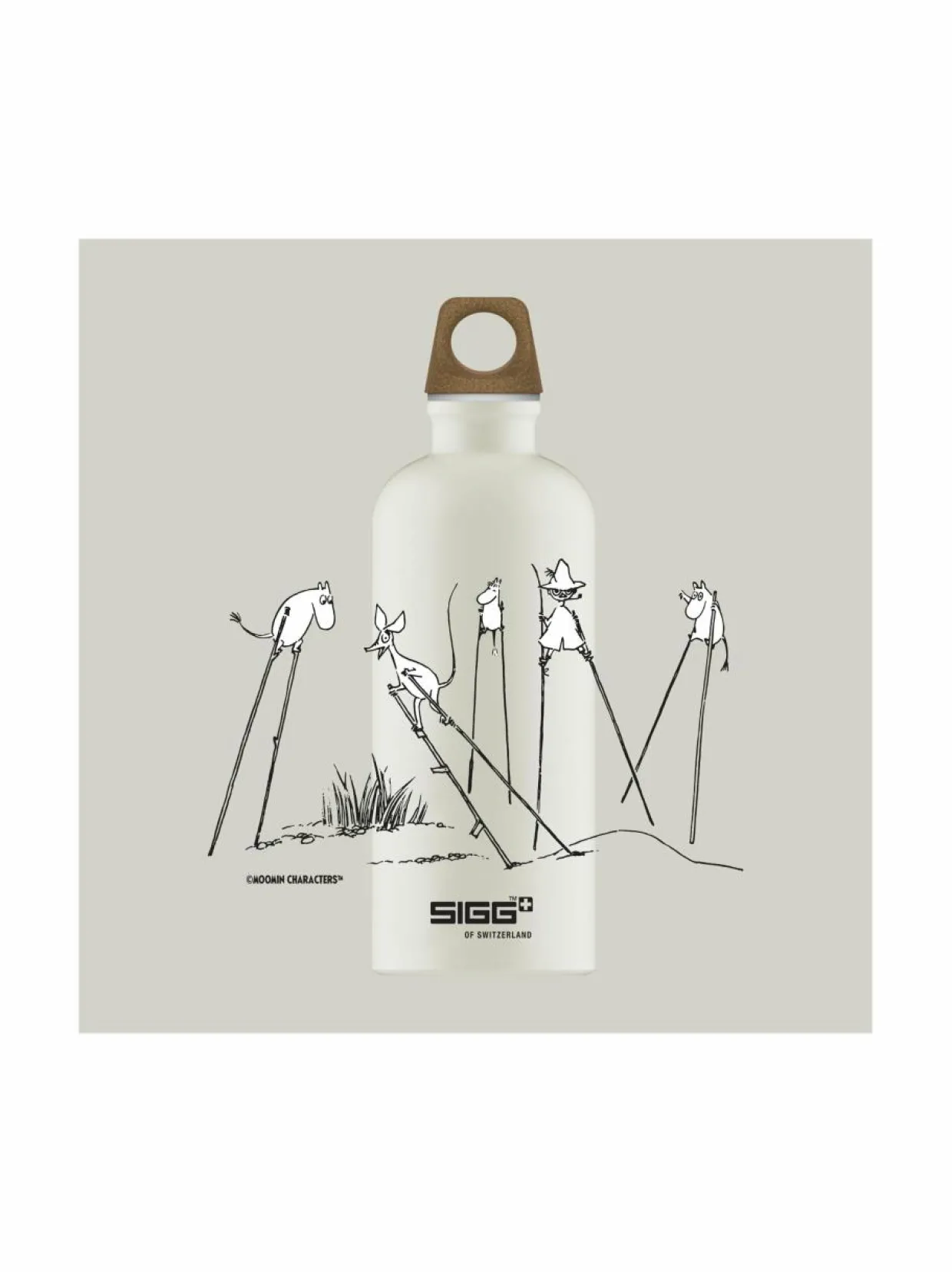 Tässä kauniissa pullossa on klassinen kuvitus Muumipeikosta, Nipsusta ja Nuuskamuikkusesta puujaloilla. Korkealaatuinen, kierrätettävä kierrätysalumiinipullo on erittäin kestävä ja kevyt.