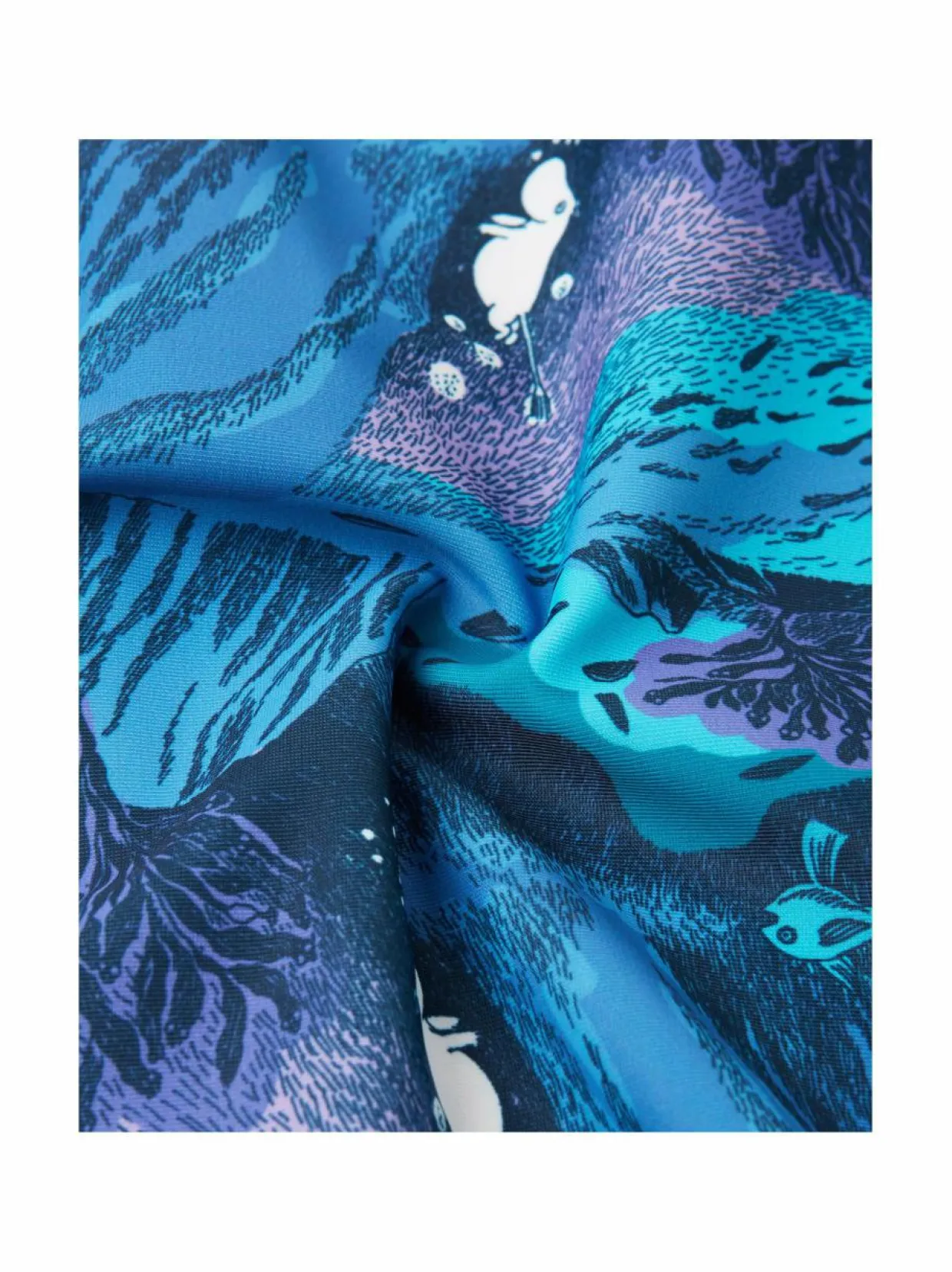 Taaperoiden uimahaalari Moomin Sandig suojaa lastasi kesän vesileikeissä. Se sopii myös hiekkalinnojen rakenteluun, sillä sen joustava ja nopeasti kuivuva materiaali siirtää hikeä pois iholta auttaen näin pitämään lapsen olon mukavana. Litteät, hankaamattomat saumat tuovat lisämukavuutta. Vetoketju helpottaa pukemista ja pienet kädet pääsevät itse vetämään sen kiinni. Vetoketjun lukon rakenne estää ketjua aukeamasta vahingossa. Pitkähihainen malli suojaa auringolta: kankaan luontainen UV-suojakerroin 50+ pitää haitalliset säteet loitolla. Muistathan kuitenkin suojata ihon paljaaksi jäävät osat aurinkovoiteella ja peittää lapsen pään hatulla.