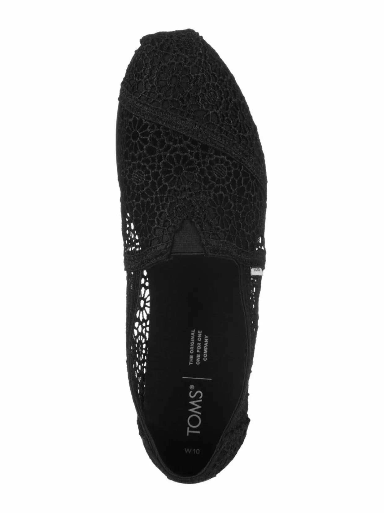 Keveissä TOMS Moroccan Crochet -kengissä on pitsinen tekstiilipäällinen ja pukemista helpottava kuminauhavenyke. Ulkopohja on valmistettu pehmeästä ja joustavasta EVA-materiaalista. Naisten US-koot.