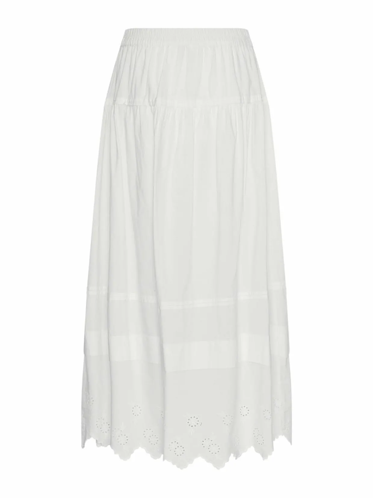 Materiaali100 % puuvilla Hoito-ohjeetKonepesu VäriBRIGHT WHITE Avainsanathame, pitkä hame, MSCH Copenhagen, levenevä hame, puuvillahame