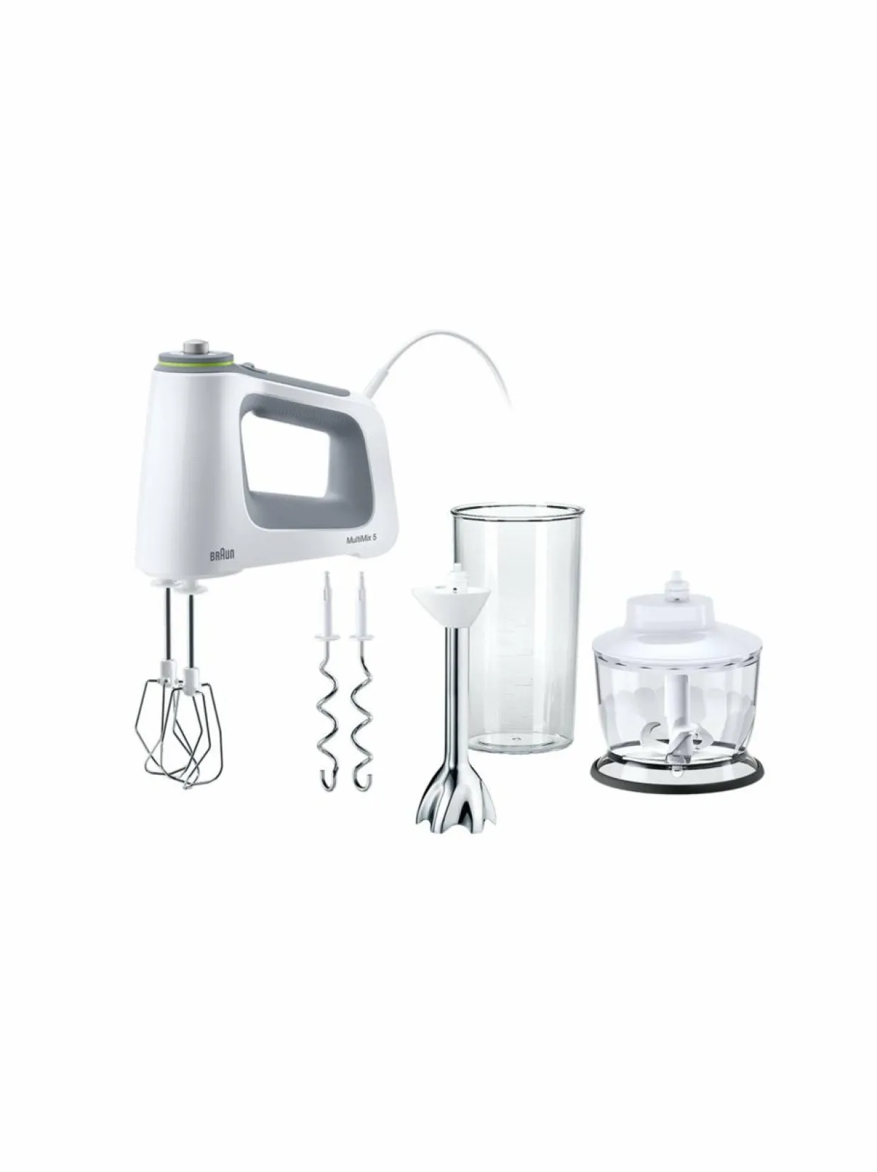 Monipuolisessa Braun MultiMix 5 sähkövatkaimessa huomio kiinnittyy tehon lisäksi käyttömukavuuteen. Pitkä virtajohto antaa liikkeelle tilaa ja vatkaimen moottori on sijoitettu niin, että sen paino kohdistuu kulhoon helpottaen työskentelyä. Valittavanasi on 9 nopeusasetusta ja nopeutta voi säätää näppärästi peukalolla. EasyClick järjestelmän avulla vispilöiden ja lisälaitteiden vaihtaminen sujuu vaivattomasti.Myyntipakkauksen mukana tulevaa 500 ml teholeikkuria ja sauvasekoitin lisäosaa hyödynnät ruoanvalmistuksessa monin eri tarvoin. Konepesun kestävät vispilät, taikinakoukut ja sauvasekoitinosa ovat ruostumatonta terästä. Virtajohdon pituus 155 cm.