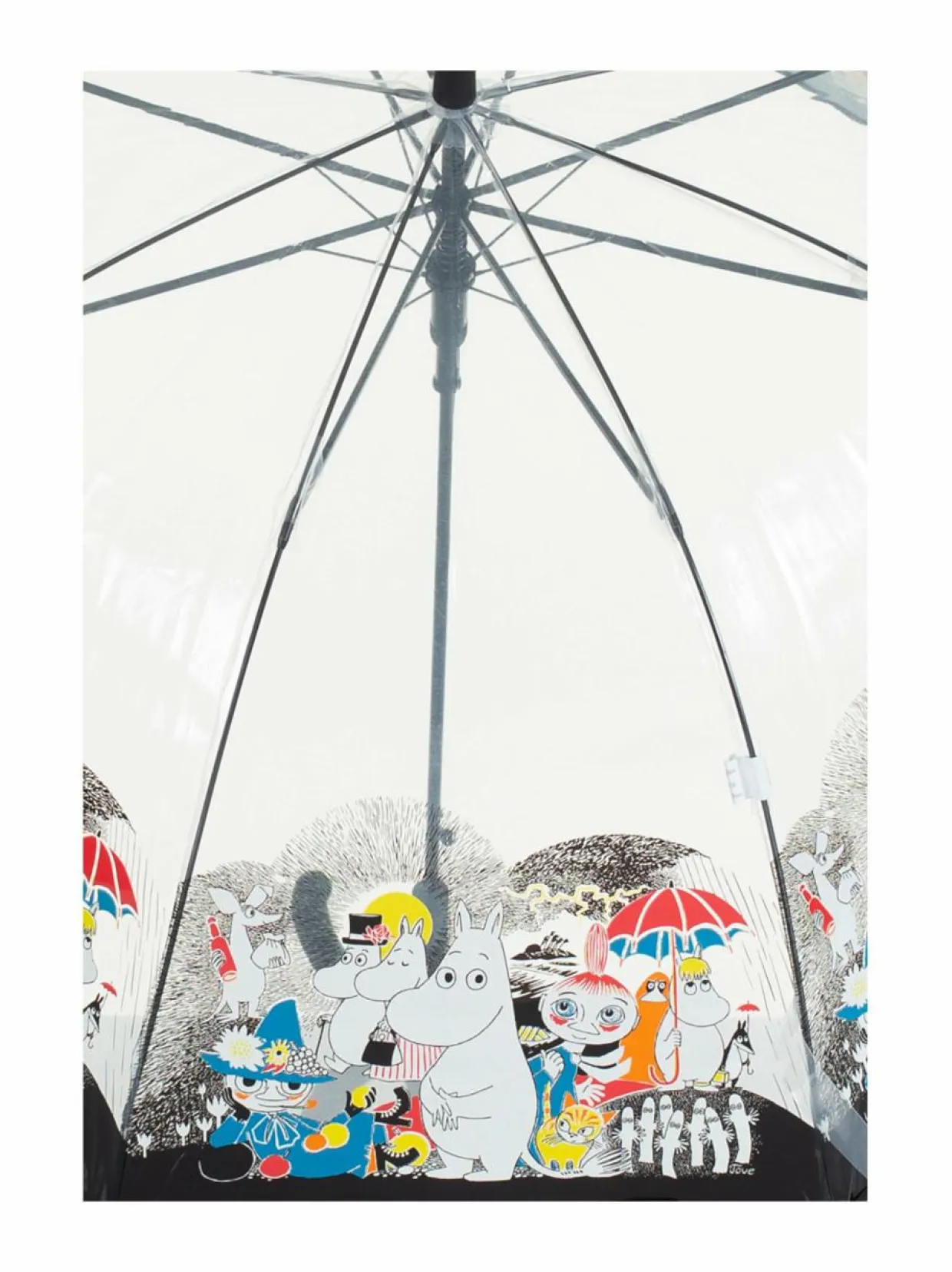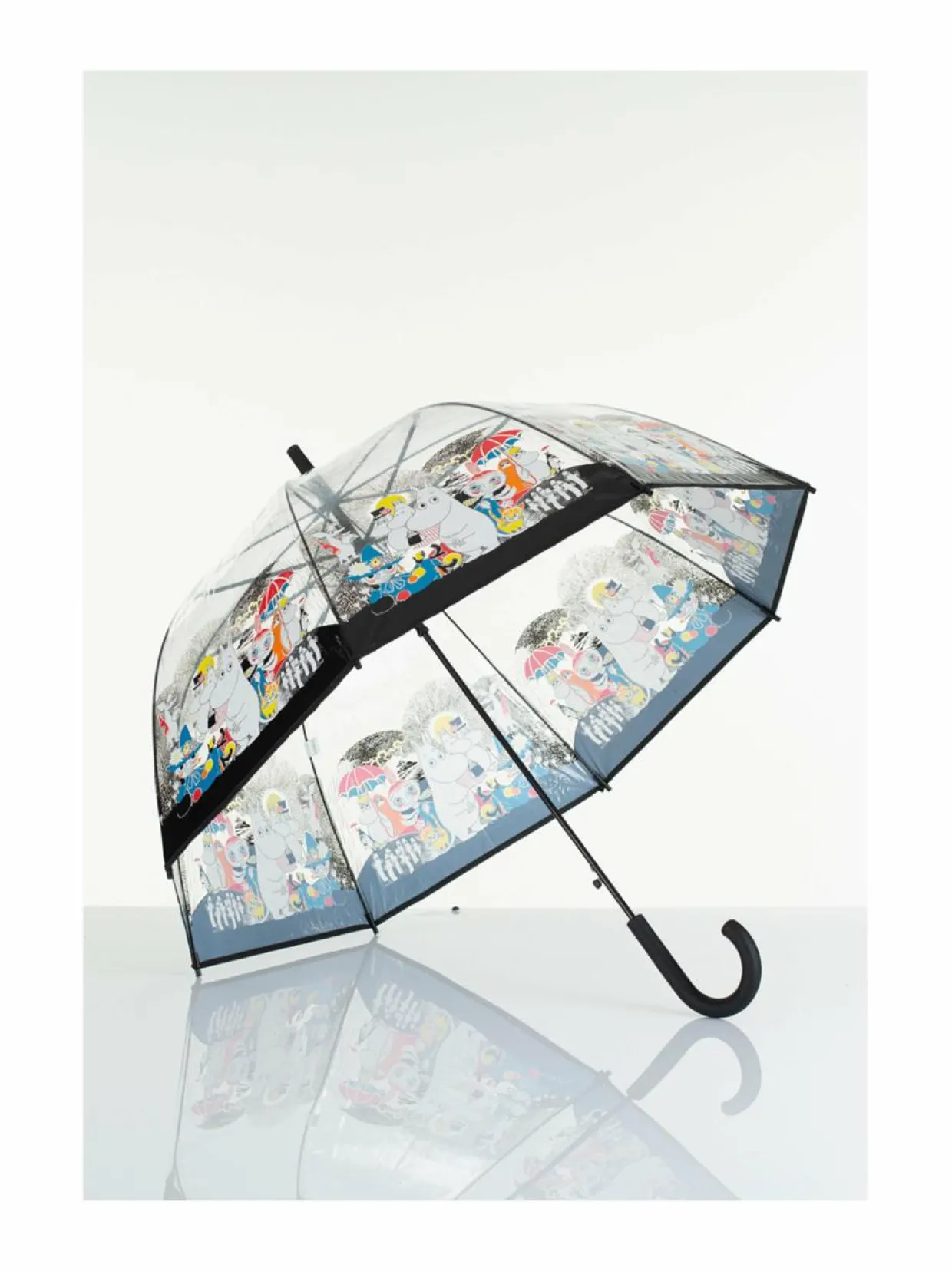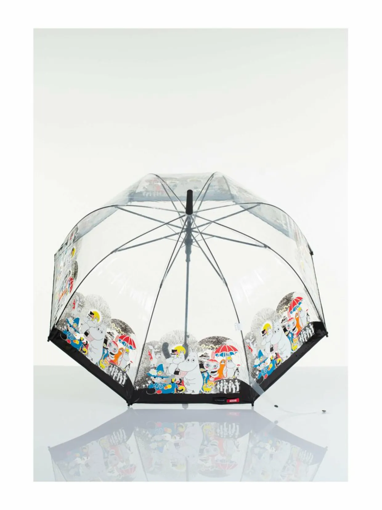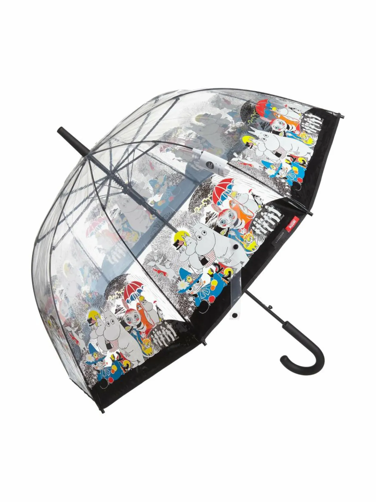L’asessorin pitkässä läpinäkyvässä sateenvarjossa on hurmaava Muumi-kuosi. Puoliautomaattinen varjo avataan nappia painamalla ja suljetaan vetämällä. Sateenvarjossa on vuoden takuu valmistusvirheiden varalle.