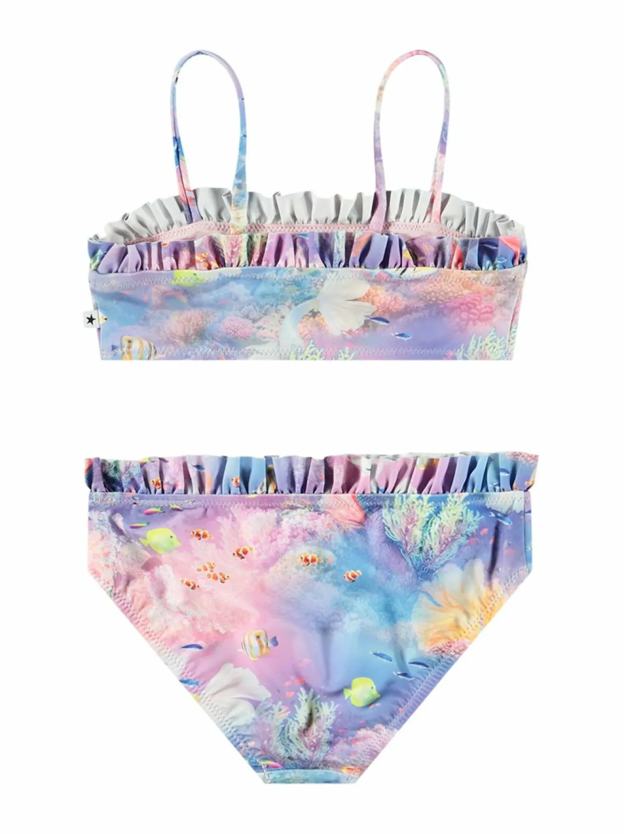Molon Naila-bikini on valmistettu 80 % kierrätetystä polyesteristä ja 20 % elastaanista. Bikini on varustettu kauniilla rypytyksillä ja upealla merieläinten kuviolla. Bikini sopii täydellisesti uima-altaalle tai rannalle. Bikini ovat mukava ja hyvin istuva. Pakkaukseen kuuluvat sekä ylä- että alaosa.