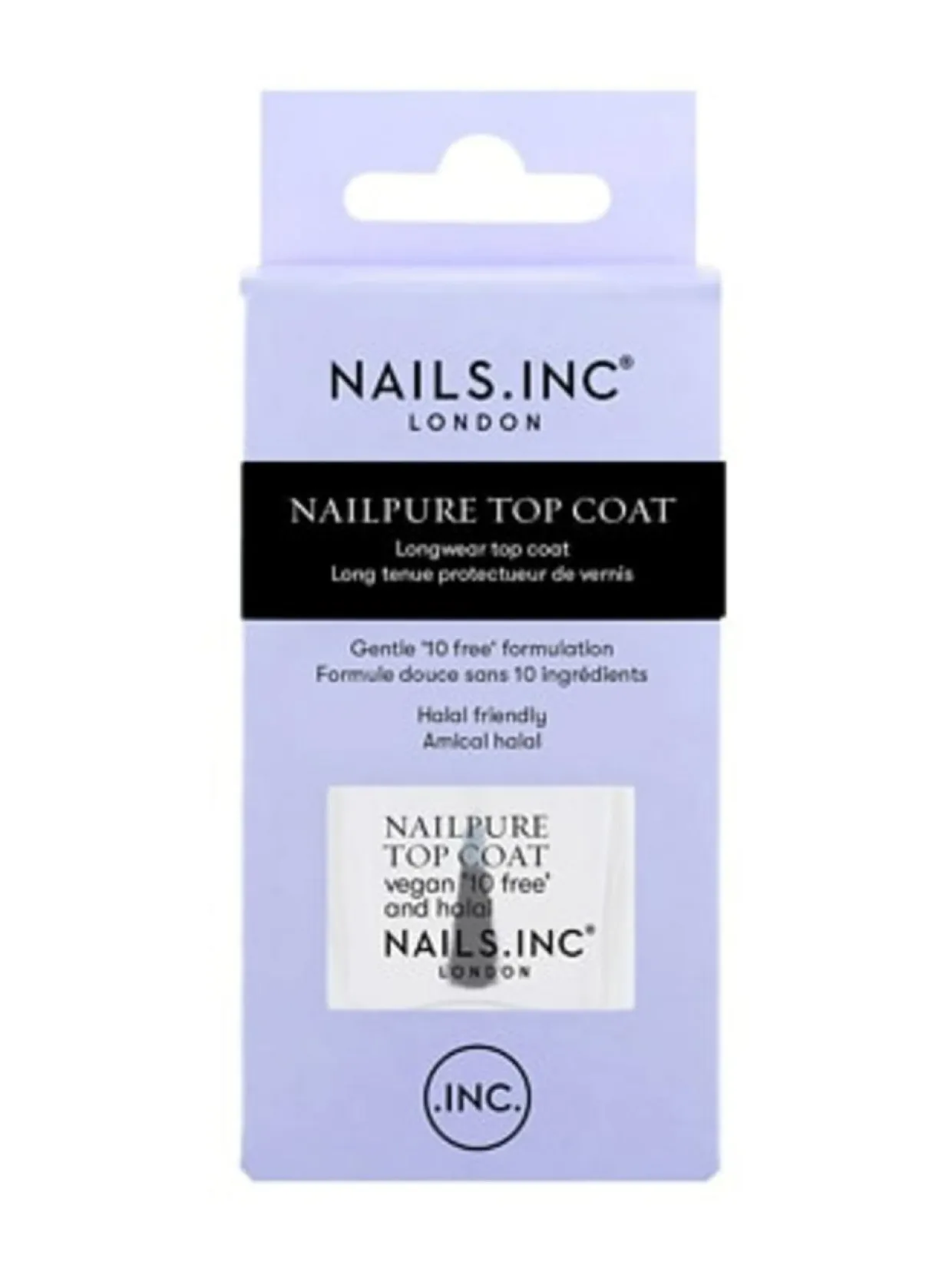NAILPURE -päällyslakan erikoisuus on alkoholiton ja vegaani koostumus, joka on rikastettu Nails.INC:n patentoidulla Regenerating Complex:lla (sekoitus sinkkiä, kalsiumia sekä aldehydejä). Tämä innovaatio boostaa kynnen luonnollista keratiinituotantoa kohti vahvempia ja terveempiä kynsiä.