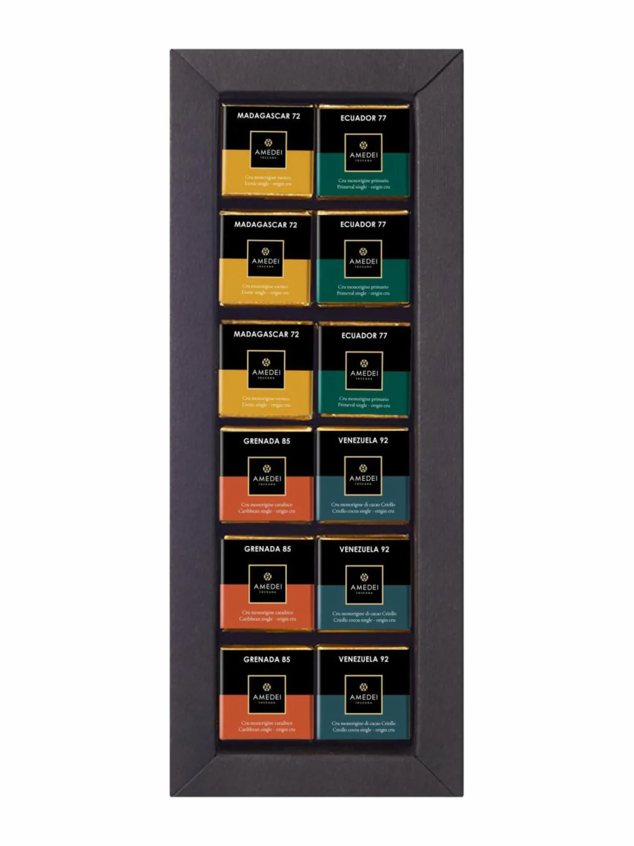 MADAGASCAR 72%: mörk choklad (min. kakaoinnehåll: 72%) (kakaomassa, rörsocker, kakaosmör). Kan innehålla spår av HASSELNÖTTER, MANDLAR, PISTAGENÖTTER, VALNÖTTER och MJÖLK.ECUADOR 77%: mörk choklad (min. kakaoinnehåll: 77%) (kakaomassa, rörsocker, kakaosmör). Kan innehålla spår av HASSELNÖTTER, MANDLAR, PISTAGENÖTTER, VALNÖTTER och MJÖLK.GRENADA 85%: mörk choklad (min. kakaoinnehåll: 85%) (kakaomassa, rörsocker, kakaosmör). Kan innehålla spår av HASSELNÖTTER, MANDLAR, PISTAGENÖTTER, VALNÖTTER och MJÖLK.VENEZUELA 92%: mörk choklad (min. kakaoinnehåll: 92%) (kakaomassa, rörsocker, kakaosmör). Kan innehålla spår av HASSELNÖTTER, MANDLAR, PISTAGENÖTTER, VALNÖTTER och MJÖLK.