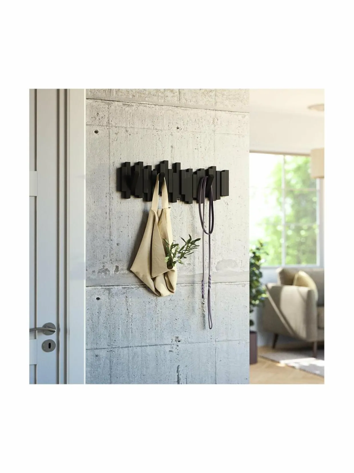 Kätevä naulakko toimii myös tyylikkäänä sisustuselementtinä. Muovisessa naulakossa on viisi koukkua, jotka voi tarpeen tullen kääntää alas tai nostaa ylös. Naulakon mitat ovat 49 x 18 x 3 cm.