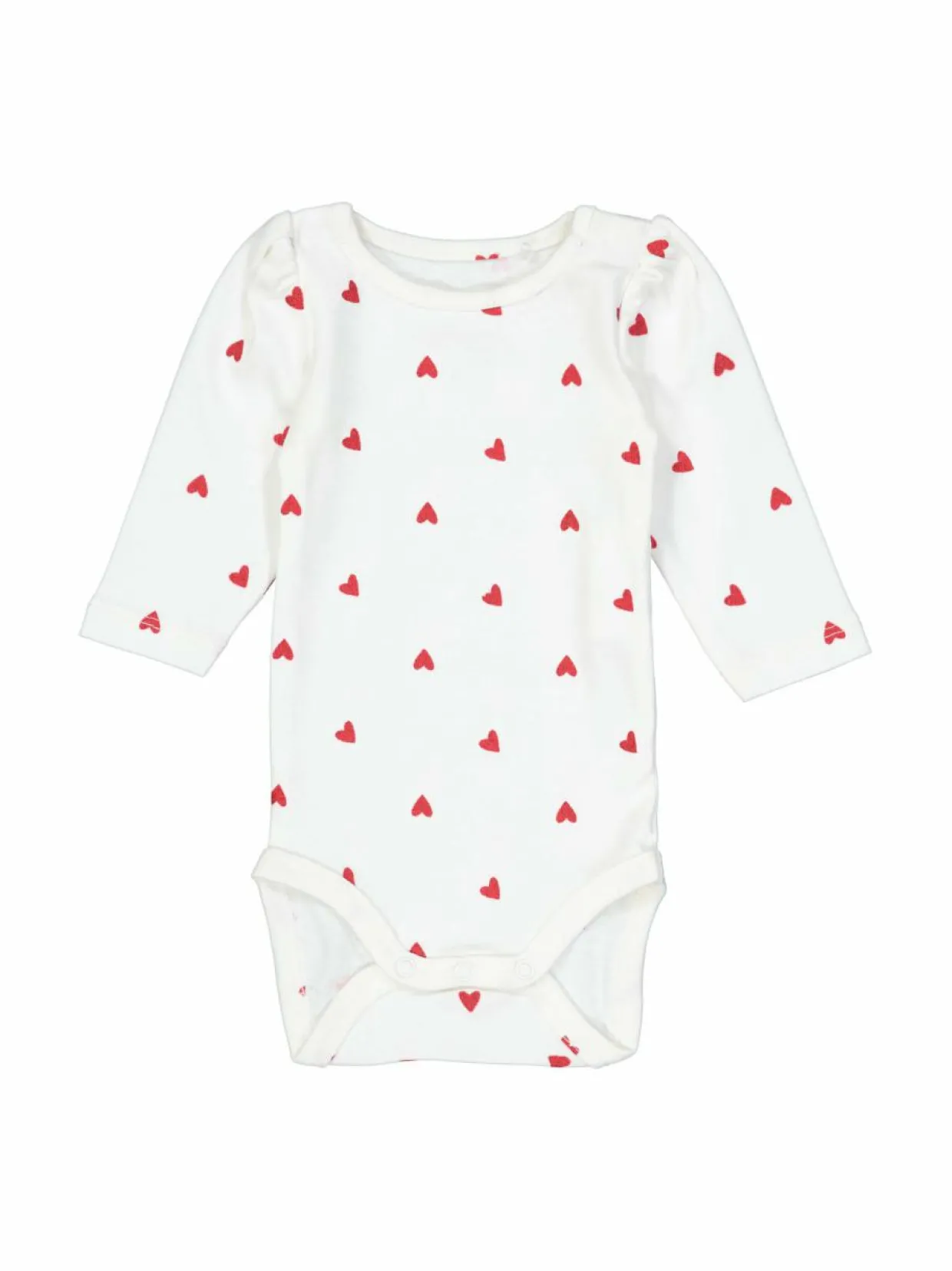Mukava body perheen pienimmille. Olkapäällä on kaunis rypytys ja body on kauttaaltaan kuvioitu. Nepparit helpottavat sen pukemista ja riisumista. Materiaalina on käytetty vähintään 50 % luomupuuvillaa. Kangas on pehmeä ja joustava.